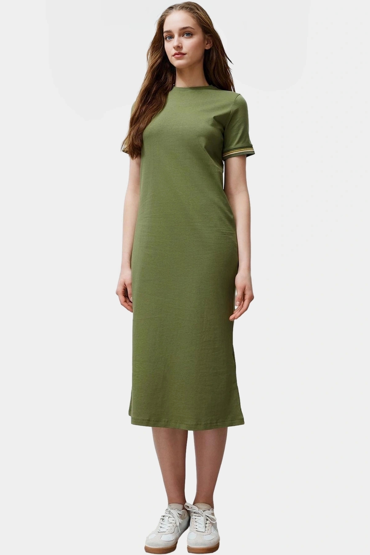 Rahat Örme Midi Elbise Bisiklet Yaka Yazlık Günlük Polyester Pamuk Şık Görünüm