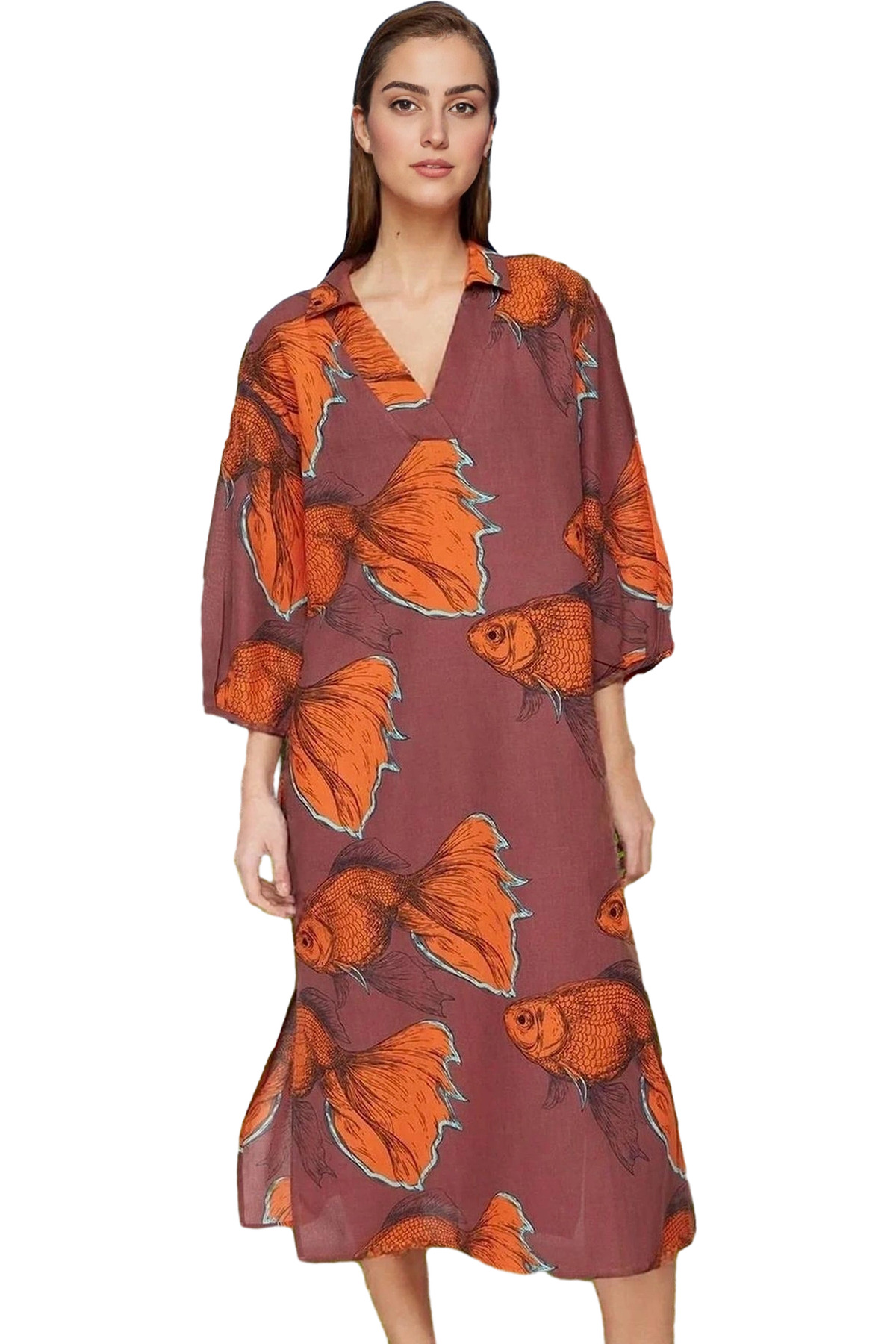 Bu rahat ve şık midi elbise, yaz aylarının sıcak günlerinde serin kalmanız ve stilinizden ödün vermemeniz için mükemmel bir seçenek. %100 pamuk vual kumaştan üretilen elbise, hafif ve nefes alabilir yapısıyla gün boyu konfor sunar. Geniş kalıbı sayesinde vücudunuzu sıkmaz, özgürce hareket etmenizi sağlar. V yaka detayı ile feminen bir görünüm kazandırırken, balon kolları da hem şık hem de kullanışlı bir detay.