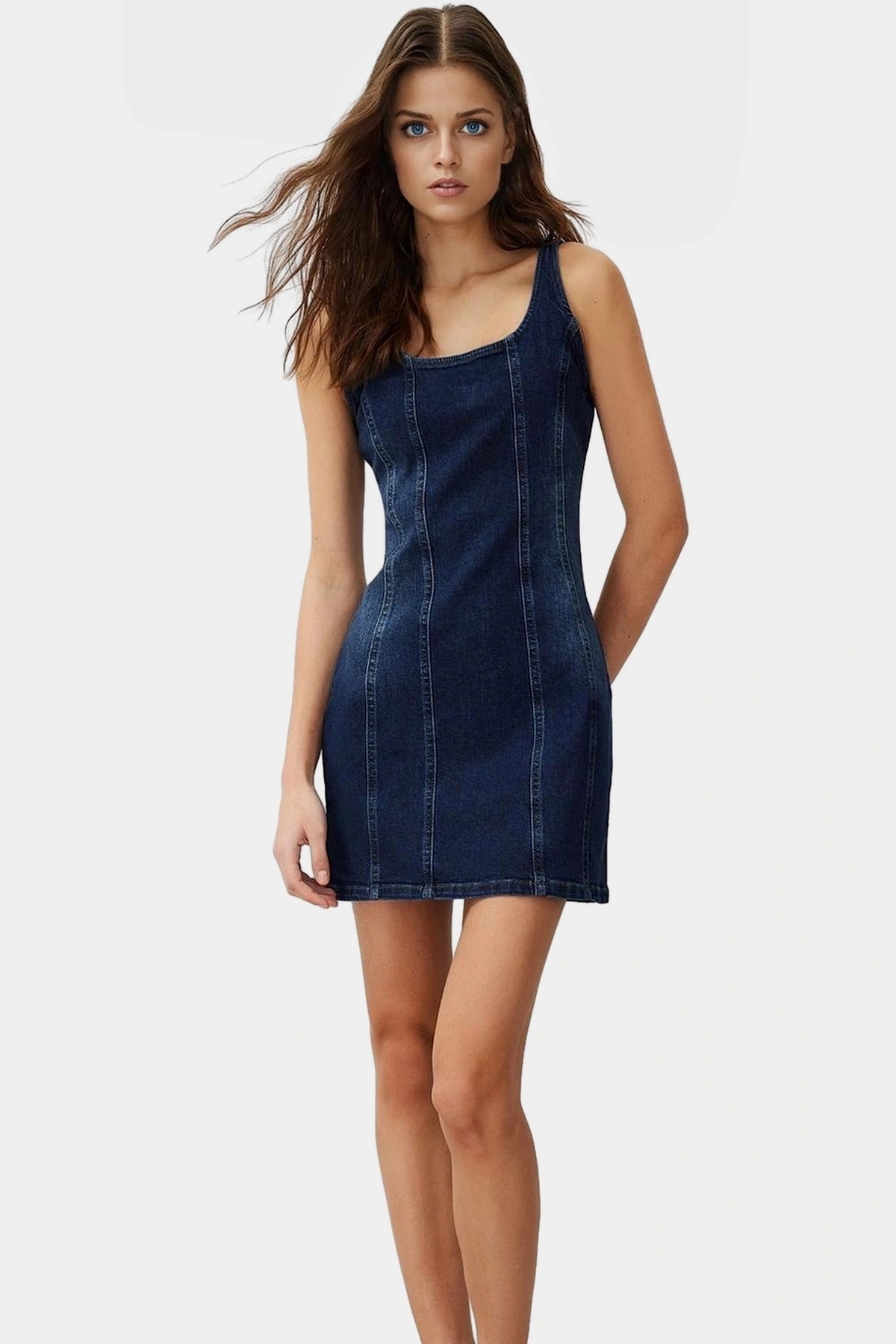Yumuşak, nefes alan ve %99 pamuktan üretilen bu mini elbise, gün boyu süren konfor için tasarlandı. Fitted kalıbı ile vücut hatlarınızı zarifçe sararken, bisiklet yakası modern ve şık bir görünüm katıyor. Düz desen ve denim kumaşın dayanıklılığı ile uzun süreli kullanım imkanı sunuyor. Günlük yaşamınızda, ofiste veya arkadaşlarınızla buluşmalarınızda rahatlıkla kullanabilirsiniz.