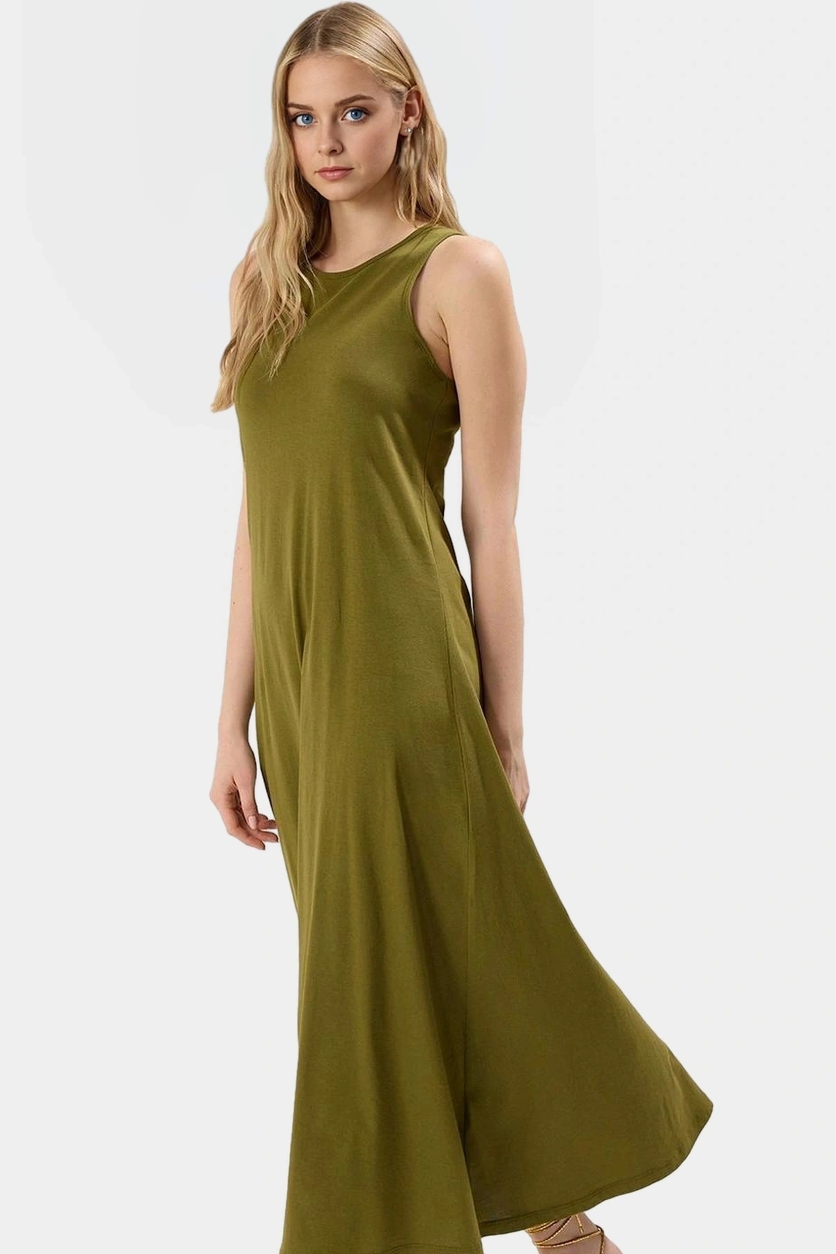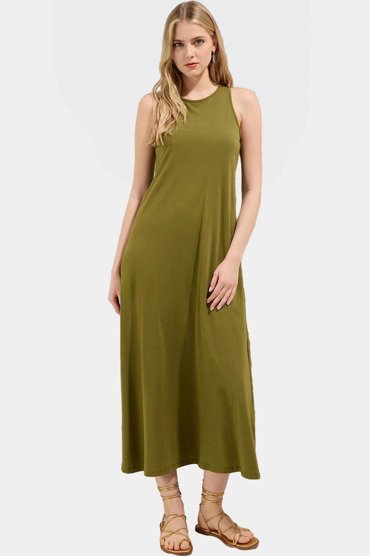 Günlük yaşamınız için ideal bir rahatlık ve şıklık kombinasyonu sunan bu muhteşem maxi elbise ile tanışın! 100% pamuk örme kumaştan üretilen bu elbise, yumuşak dokusuyla gün boyu konfor sağlar. Nefes alabilen yapısı sayesinde yaz sıcağında bile serin kalmanıza yardımcı olur. A-line kesimi, vücudunuza zarifçe oturur ve her hareketinizde özgürlük hissi verir. Halter yakası, şık ve modern bir görünüm kazandırırken, düz tasarımı her türlü aksesuarla kolayca kombinlenebilir.
