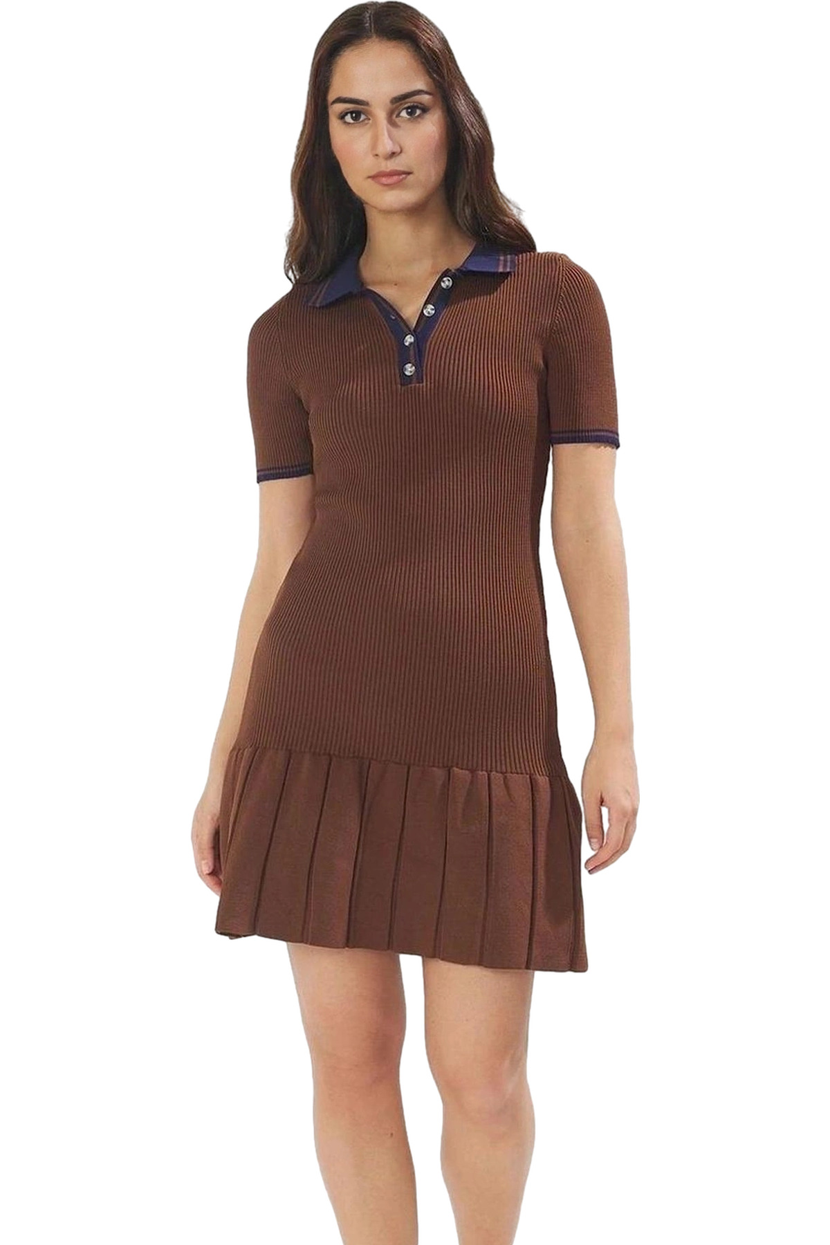 Bu yazın en gözde parçası olacak, rahat ve şık ekru mini elbiseyle tanışın! 100% polyester triko kumaştan üretilen elbise, gün boyu konfor sunar. Kısa kollu, polo yaka tasarımıyla hem modern hem de şık bir görünüm elde edersiniz. Bodycon kalıbıyla vücut hatlarınızı zarifçe ortaya koyarken, pileli etek detayı ise elbiseye hareketlilik katar. Yaz aylarına uygun ince yapısıyla sıcakta serin kalırsınız. 88 cm’lik ön boyuyla ideal bir mini uzunluğa sahiptir.