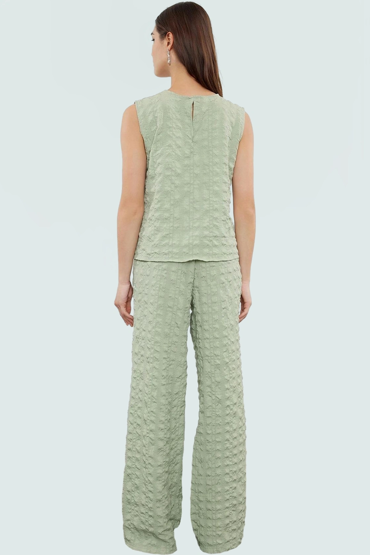 Hem şıklığı hem de konforu arayanlar için mükemmel bir seçenek olan Mint yeşil bluz pantolon takımımız, yaz aylarının enerjisini yansıtan bir tasarım. Dokuma kumaşın hafif ve nefes alan yapısı, gün boyu rahatlık ve serinlik sunarken; zarif dokusu ile her ortamda göz alıcı bir görünüm yaratıyor. Bu takım, günlük hayatta veya özel günlerde rahatlıkla tercih edilebilir.