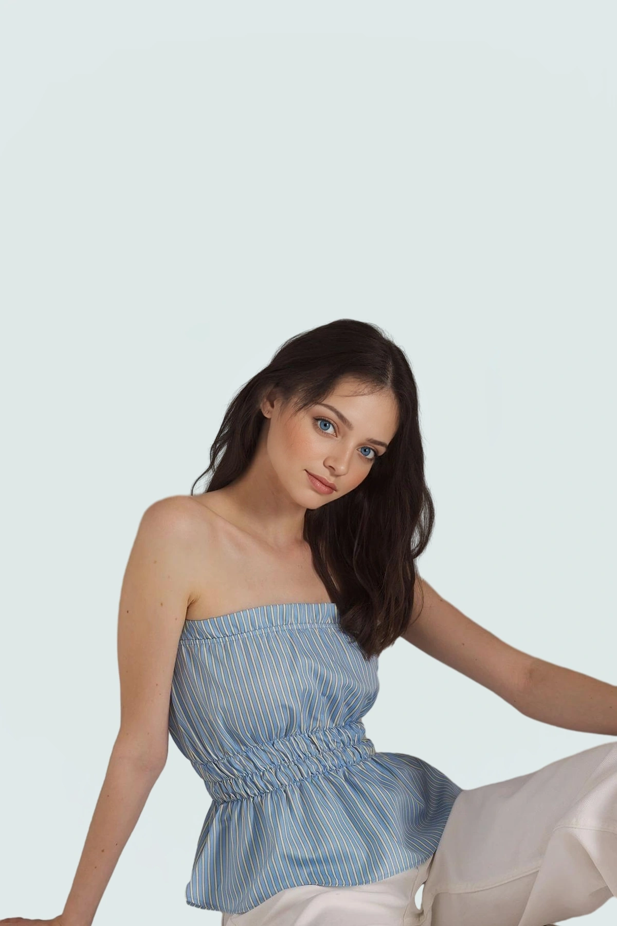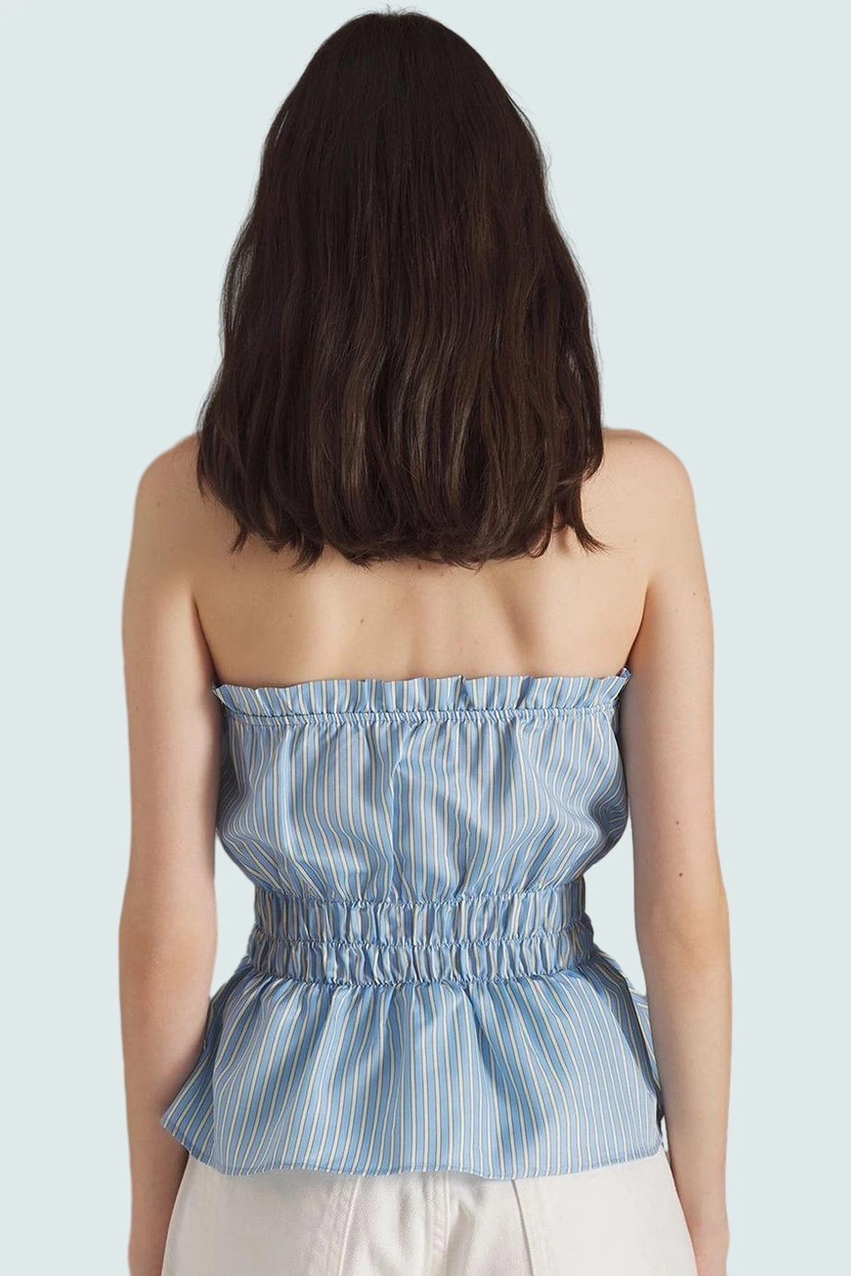 Yaz aylarının sıcak günlerinde hem şık hem de rahat hissetmek mi istiyorsunuz? O zaman bu mavi çizgili kolsuz bluz tam size göre! Nefes alan terrycotton kumaşıyla gün boyu konfor sunan bluz, şık çizgili deseniyle de tarzınızı yansıtacak. Fitted kalıbıyla vücudunuza mükemmel uyum sağlarken, straplez tasarımıyla feminen bir görünüm oluşturmanıza yardımcı olur.