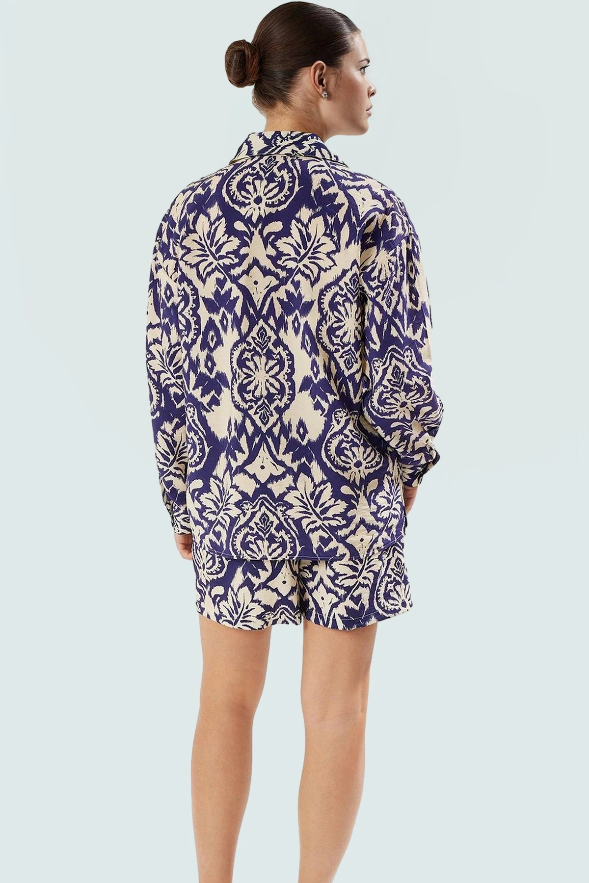 Bu nefes alan ve hafif viskoz kumaştan üretilen gömlek şort takımıyla yaz sıcağında rahat ve şık görünüm elde edebilirsiniz. Etnik desenleri ve yüksek kaliteli kumaşıyla öne çıkan takım, gün boyu konfor sunarken stilinizi de tamamlar. Oversize kalıbı, farklı vücut tiplerine uyum sağlayarak herkesin rahatlıkla kullanabileceği bir seçenek sunar. Günlük kullanım için ideal olan bu takım, yaz aylarında her anınızda rahatlığı ve şıklığı bir araya getirir.
