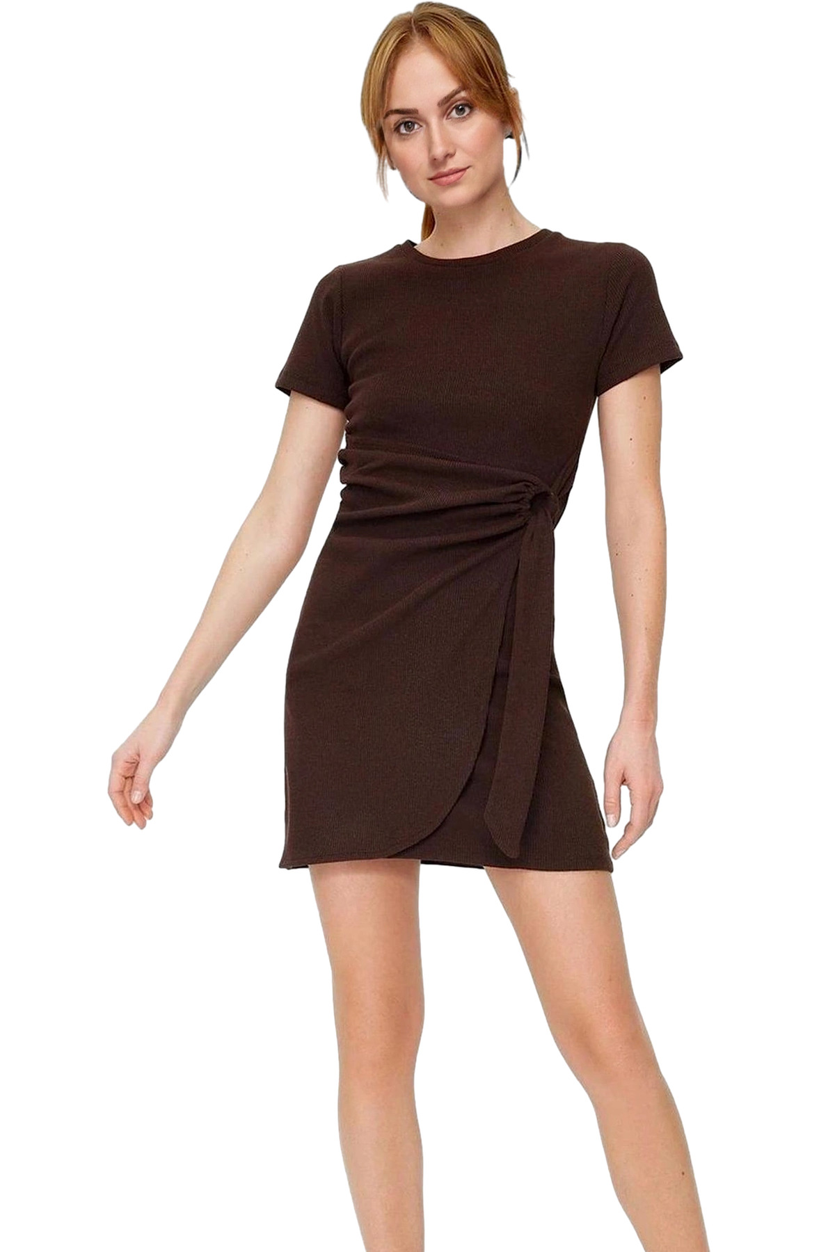 Kendinizi rahat ve şık hissetmenizi sağlayacak bu mini elbise, günlük yaşamınız için mükemmel bir seçim! Yüksek kaliteli örme kumaştan üretilen elbise, 50% polyester, 39% pamuk ve 11% viskoz karışımıyla hem yumuşak hem de dayanıklıdır. Bisiklet yakası ve bağlama detayı ile şıklığı yakalarken, mini boyu ve rahat kalıbı ile gün boyu konforu deneyimlersiniz.