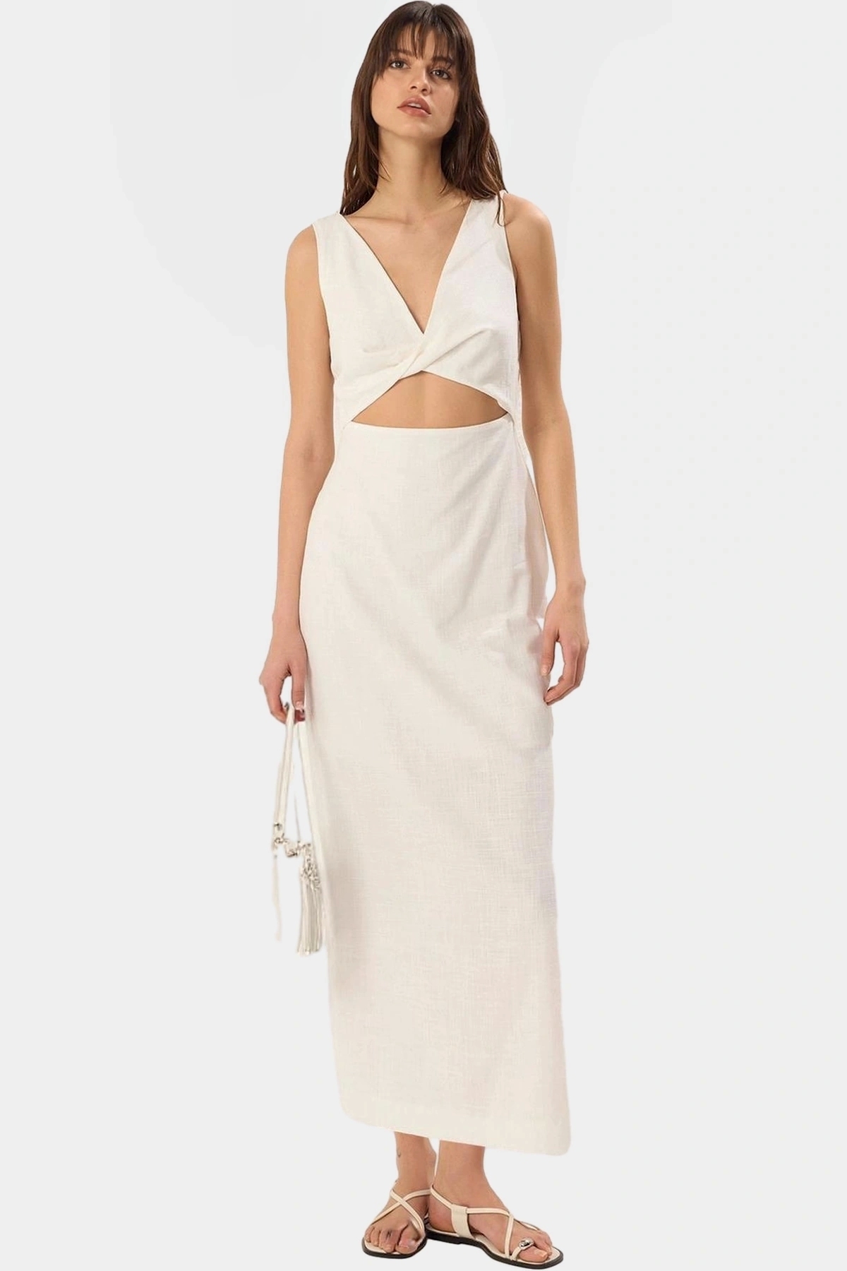 Rahat Yazlık Dokuma Elbise A Kesim Cut Out Detaylı Bisiklet Yaka Profesyonel Görünüm Modern Stil