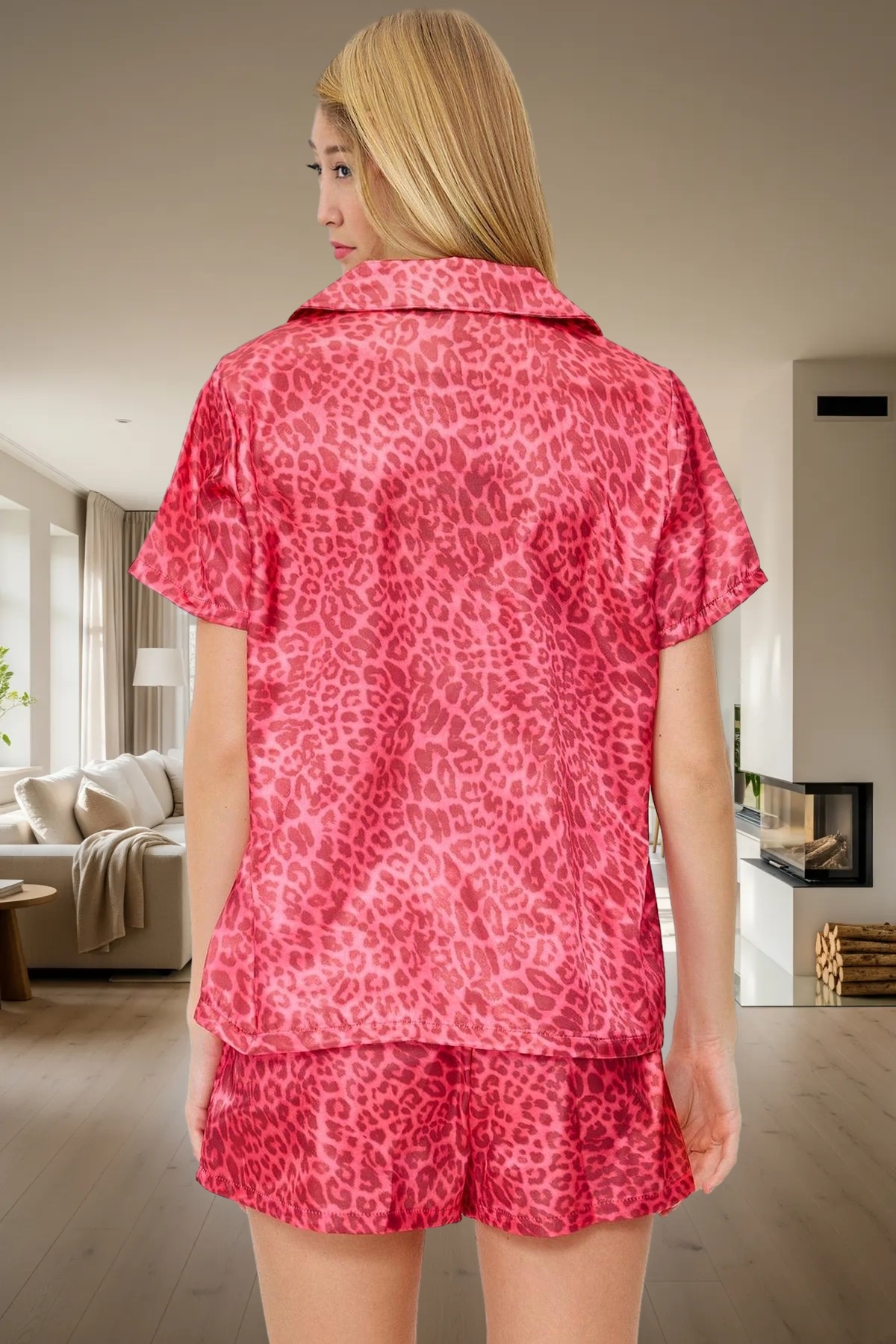 Leopar deseninin canlılığı ve bordo renginin şıklığı, bu takımı benzersiz kılar. Kısa kol ve şort tasarımı, sıcak yaz gecelerinde serin ve rahat kalmanıza yardımcı olur. Normal bel kesimiyle de konforlu bir uyum sağlar. Bu takım, sadece uyumak için değil, evde rahatlamak, kitap okumak veya misafir ağırlamak gibi çeşitli aktiviteler için de mükemmel bir seçenektir. Rahatlığını ve şıklığını aynı anda arayanlar için ideal bir ev giyimi seçeneğidir.
