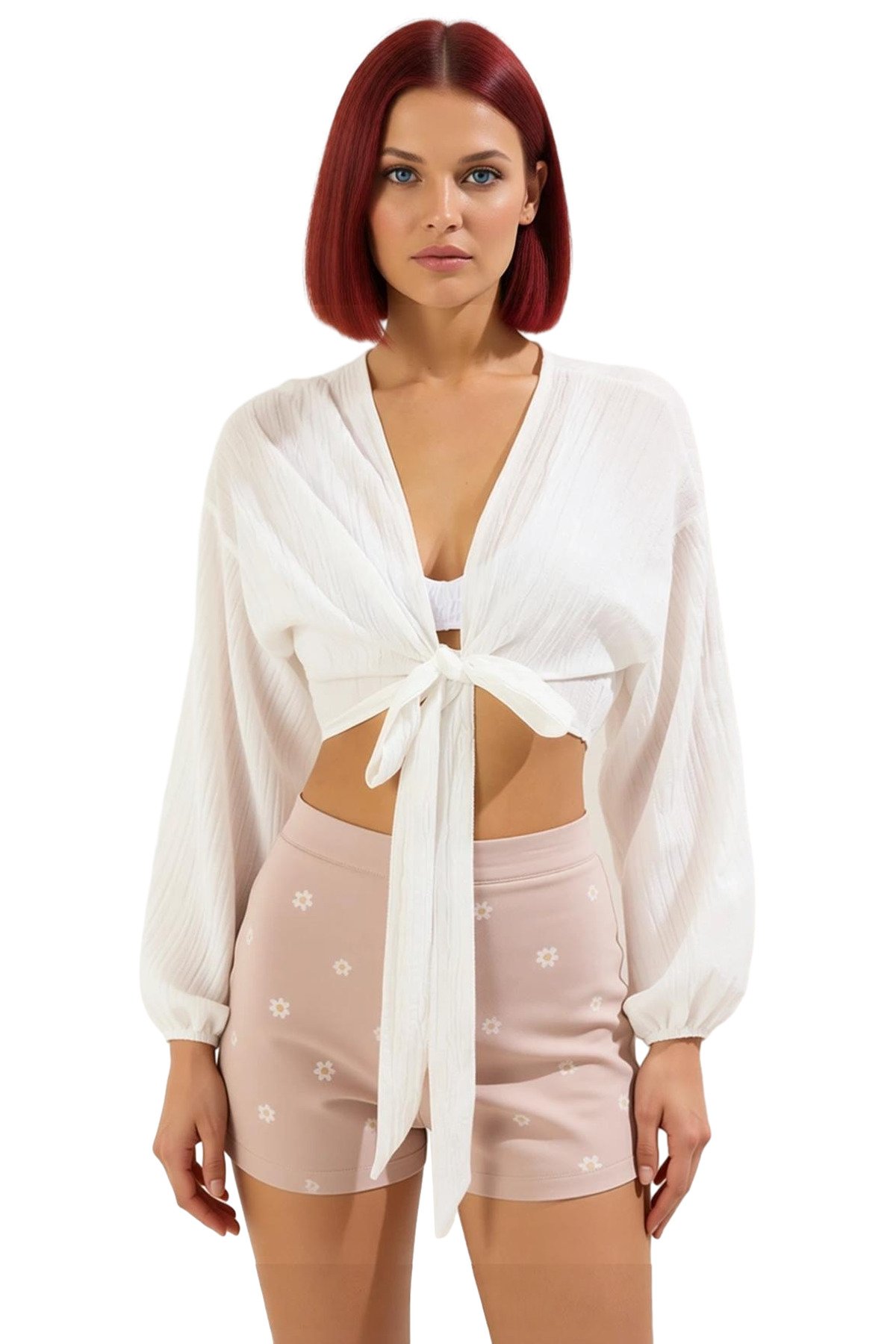 Yumuşak ve nefes alabilir dokuma kumaş, gün boyu konforlu bir kullanım sağlar. Crinkle dokuma tipi ile şık ve modern bir görünüm elde edersiniz. Astarsız tasarımı, yaz sıcağında sizi bunaltmaz. Uzun kolları güneşten korunmanıza yardımcı olurken, crop boyu ile şık ve modern bir siluet oluşturur.