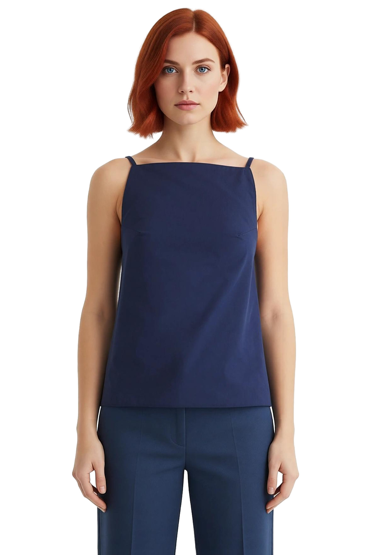 Bu sezonun en gözde parçası, regular kalıbıyla rahatlığı ve şıklığı birleştiren lacivert bluz ile tanışın! Dacron dokuma kumaştan üretilen bluz, nefes alabilir yapısıyla yazın sıcak günlerinde bile konforlu bir kullanım sunar. İnce askıları ve kare yakasıyla modern bir görünüm sergilerken, cepsiz tasarımıyla minimalist bir stil oluşturmanıza yardımcı olur. Polyester ve elastan karışımı sayesinde kolay ütülenir ve kırışmaz, uzun süre ilk günkü gibi kalır.