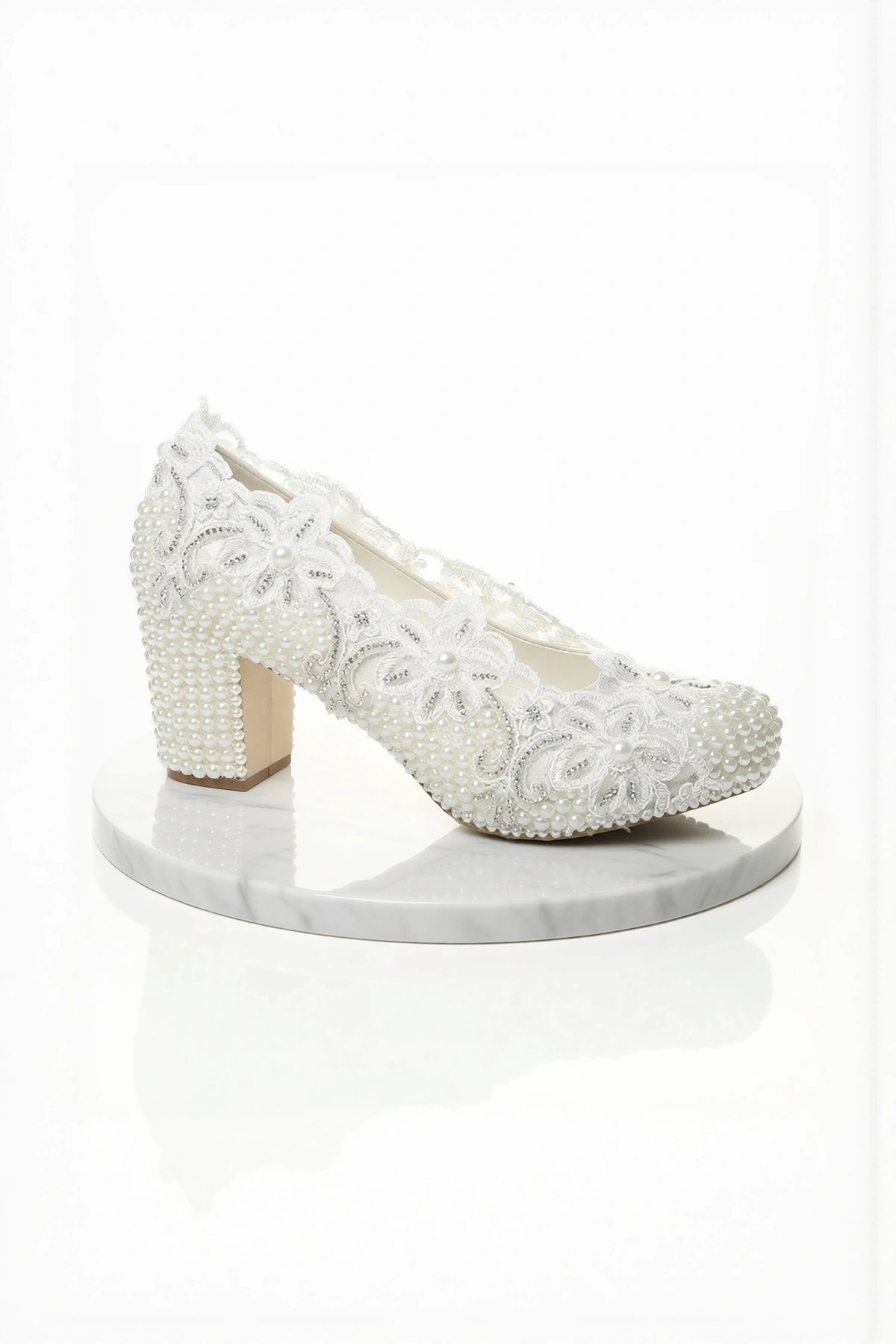 Sedef Inci Taş Işlemeli Gelin Ayakkabı Kadın Topuklu Abiye Ayakkabı Şık Gece Ayakkabısı