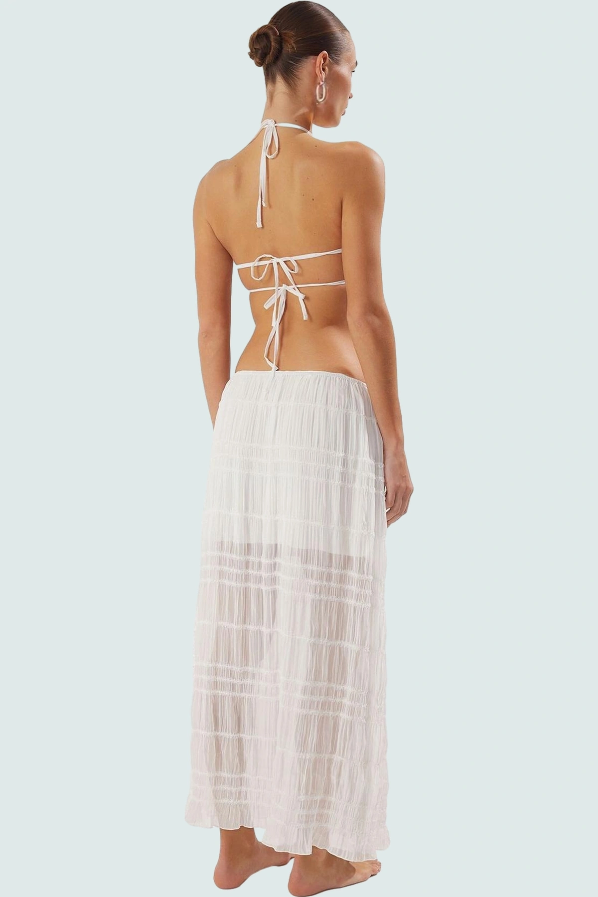 Ürün, 36-40 beden aralığında mevcuttur. Modelin ölçüleri: Boy: 177cm, Göğüs: 83cm, Bel: 63cm, Kalça: 92cm. Manken üzerinde S-36 bedendir. Plaj günleriniz, havuz partileri, akşam yürüyüşleri veya özel davetler için ideal bir seçim. Eteğin belindeki bağcık detayı, mükemmel bir uyum sağlar. Bu muhteşem takımı kaçırmayın!