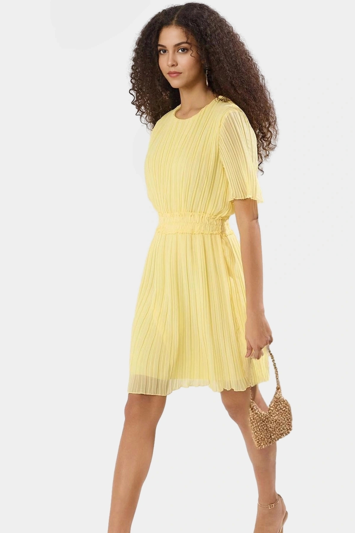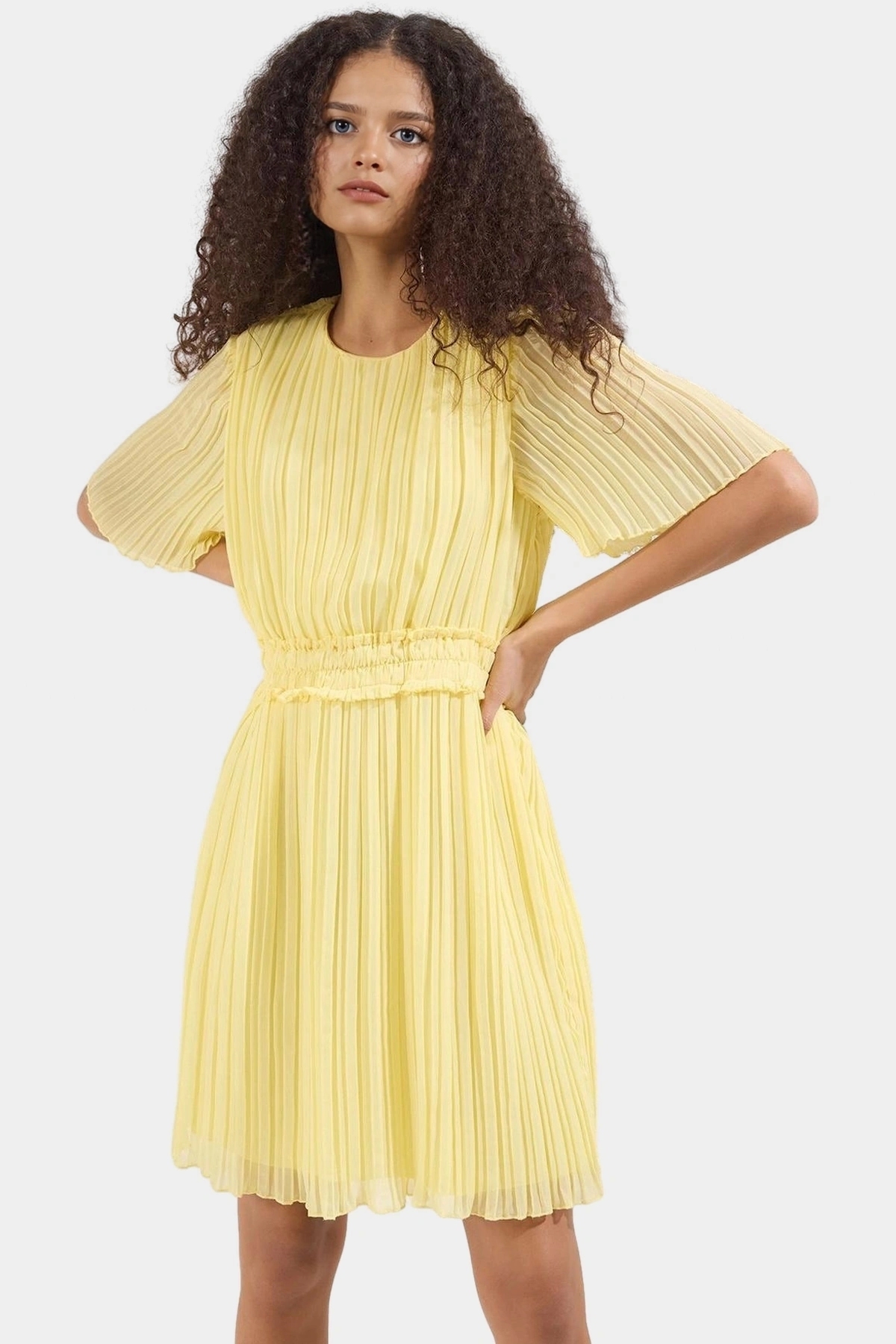 Rahatlığı ve şıklığı bir arada arayanlar için ideal bir seçenek olan bu mini elbise, yaz aylarının vazgeçilmezi olacak. Nefes alan şifon dokusuyla gün boyu konfor sunarken, piliseli tasarımıyla dikkat çekici bir görünüm yaratıyor. Skater kalıbı ve kısa boyuyla hareket özgürlüğü sağlarken, kısa kolları sayesinde sıcak günlerde serin kalmanıza yardımcı olur.