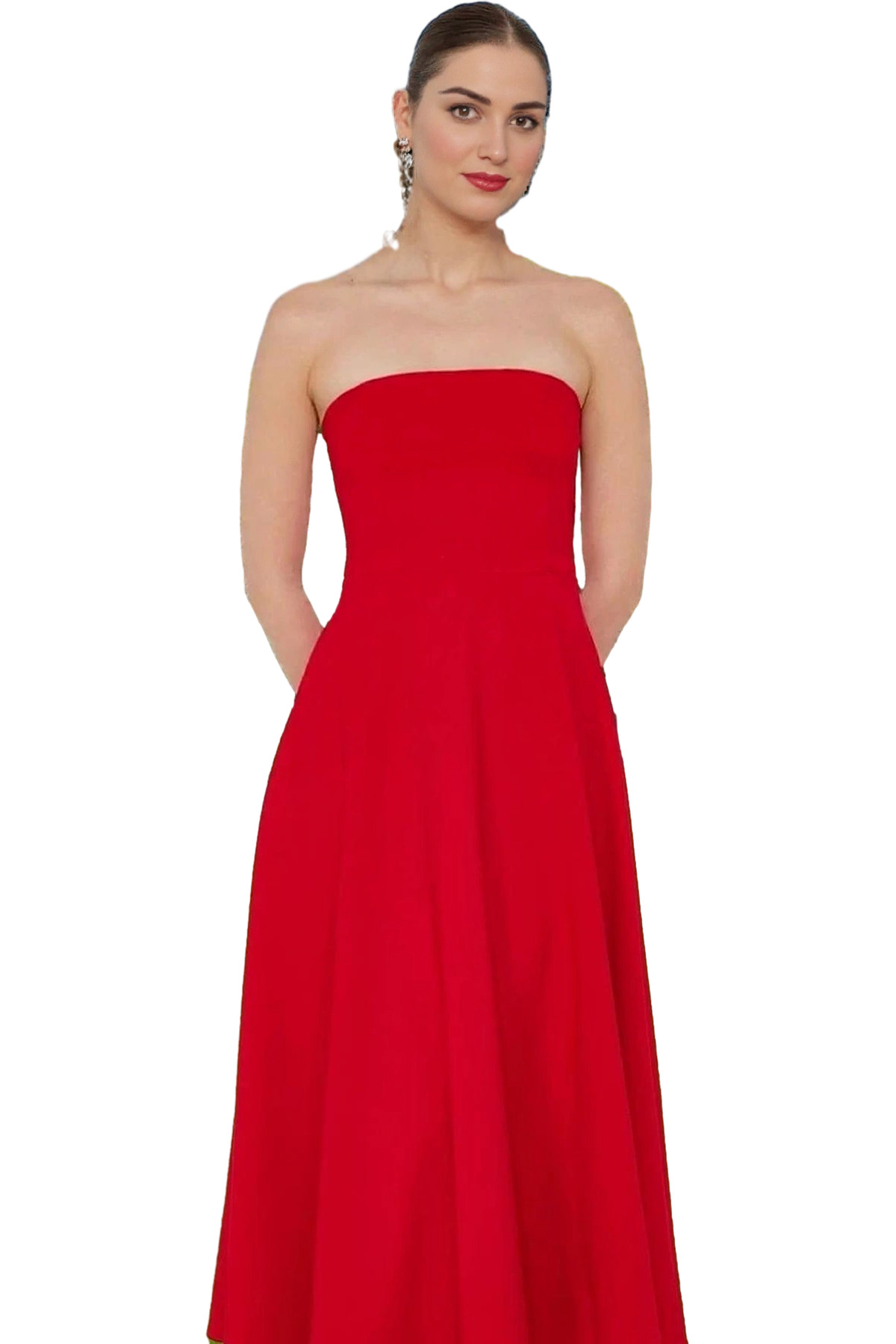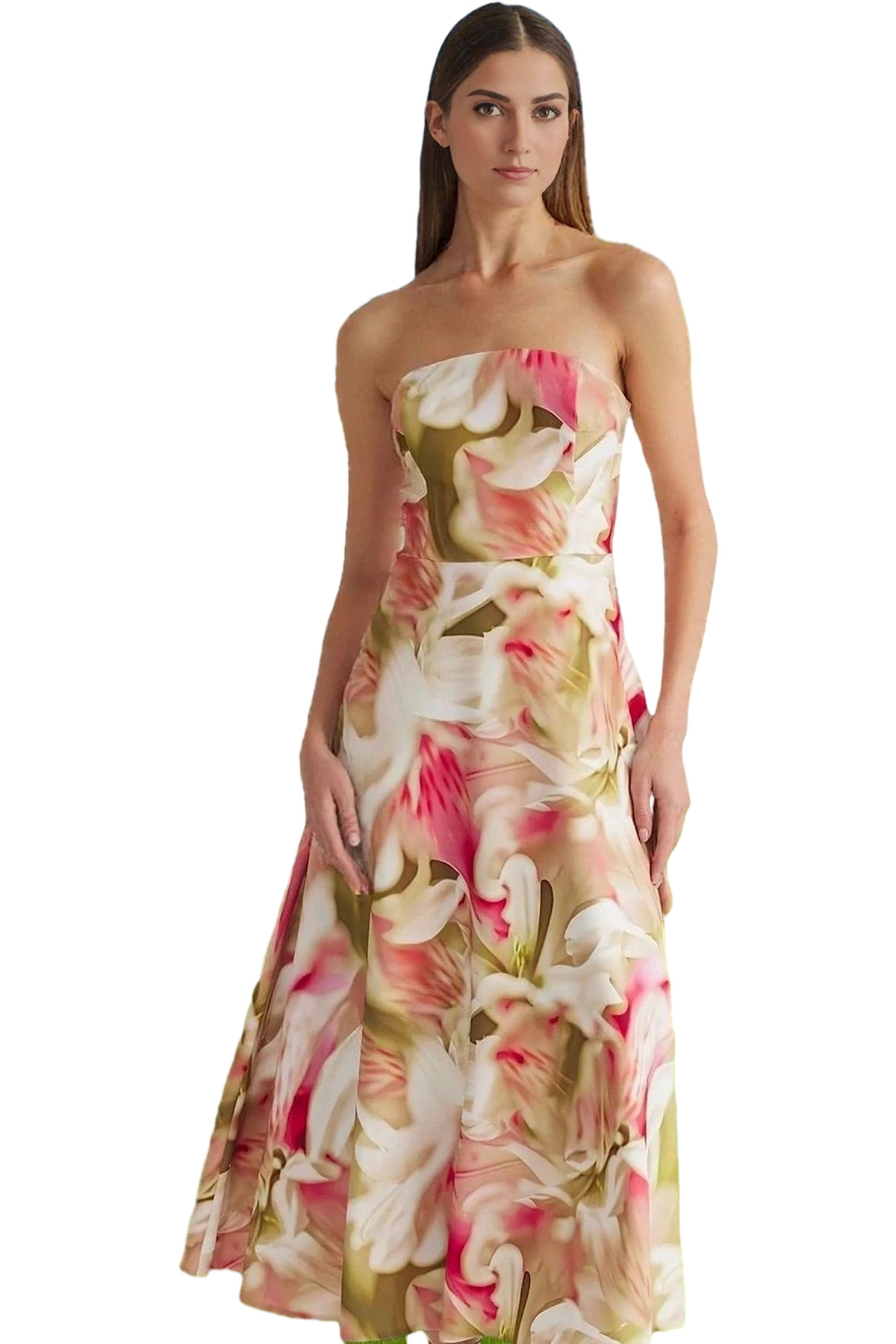Bu göz alıcı A-kesim elbise, özel günlerinizde şıklığınızla parlamanızı sağlayacak. Straplez tasarımı ve midi boyu ile feminen ve zarif bir görünüm sunar. Canlı çiçek desenli dokuma kumaş, elbisenin şıklığını daha da artırıyor. Nefes alabilen ve hafif yapısıyla gün boyu rahatlık sağlar. Yüksek kaliteli polyester ve elastan karışımı kumaştan üretilen elbise, dayanıklı ve uzun ömürlüdür. Eteğinin belden açılan özel tasarımı, vücut hatlarınızı zarifçe vurgulayarak kusursuz bir siluet oluşturur. Elbisenin ölçüleri: Modelin Ölçüleri: Boy: 175cm(59) Göğüs 79cm(31In) Bel: 60cm(23In) Kalça: 88cm(34in). Mankenin üzerindeki ürün S368 bedendir. Model ön boyu 130 cm’dir. Farklı vücut tiplerine uyum sağlayan tasarımıyla her bedene mükemmel oturur. Mezuniyet baloları, düğünler ve diğer özel davetler için ideal bir seçimdir. Elbisenizi uzun yıllar kullanabilmeniz ve bakımını kolayca yapabilmeniz için yıkama talimatlarına uymanızı öneririz. Stüdyo çekimlerinde ışık farklılıklarından dolayı renklerde küçük değişiklikler olabilir.