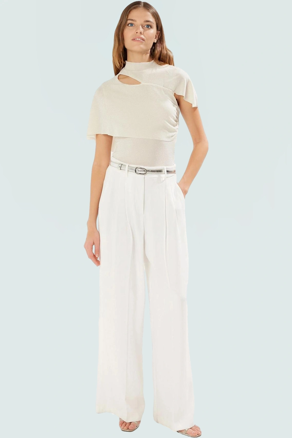 Bu yazın en göz alıcı parçası olan ekru bluzümüz, benzersiz tasarımı ve konforlu yapısıyla sizi büyüleyecek. Dik yakası ve zarif cut out detayıyla modern ve şık bir görünüm sunan bluz, simli örme kumaşıyla da göz kamaştırıyor. Rahat kalıbıyla gün boyu kendinizi iyi hissetmenizi sağlar. Nefes alabilen yapısıyla sıcak yaz günlerinde bile serin kalmanıza yardımcı olur. Yüksek kaliteli 87% poliamid, 8% metalize elyaf ve 5% elastan karışımıyla üretilen bluz, dayanıklı ve uzun ömürlü kullanım sunar. Kolayca temizlenebilen kumaşı sayesinde pratik kullanım sağlar.