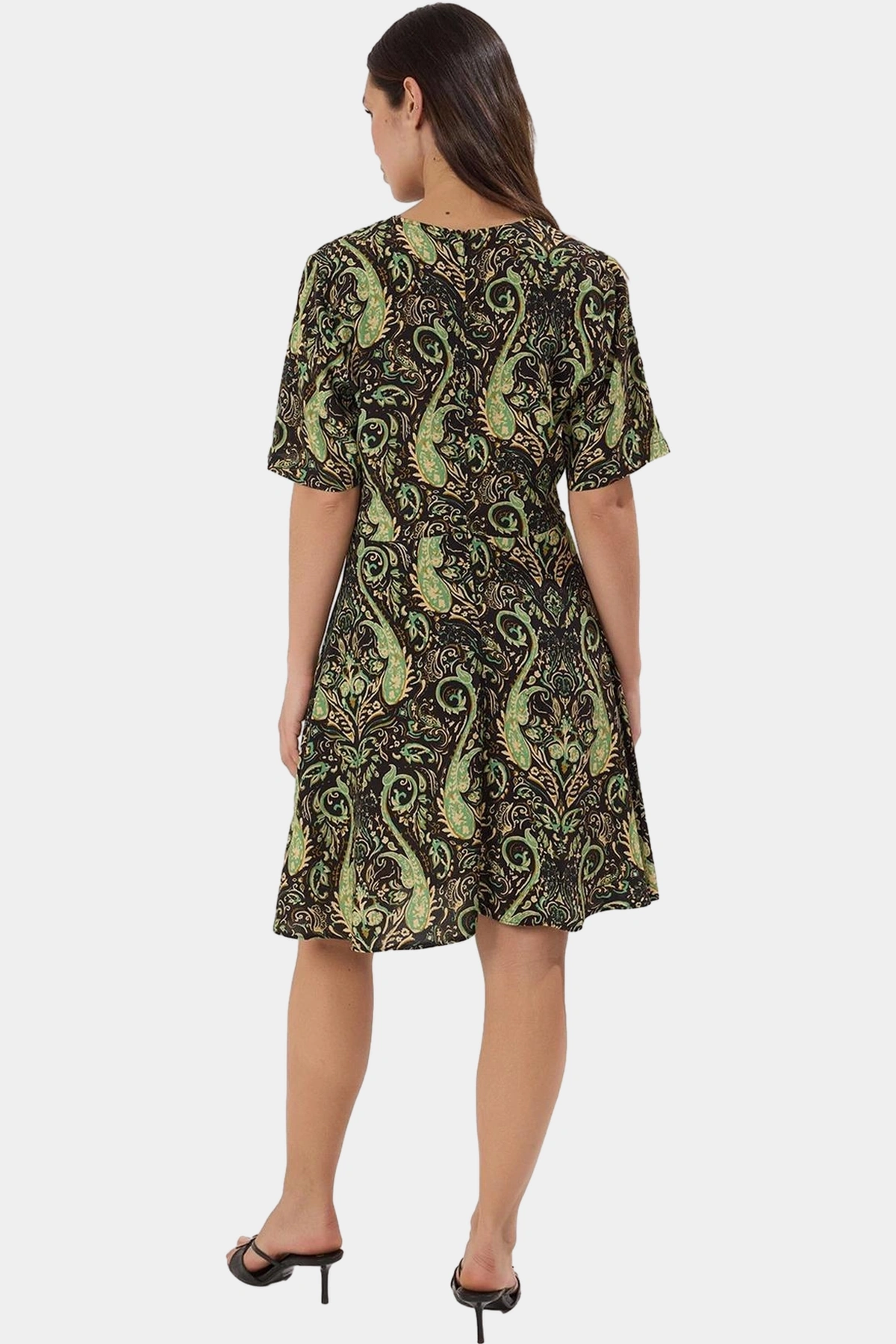 Bu yazlık elbise şıklığı, rahatlığı ve feminenliği bir arada sunuyor. %100 Viskoz modal kumaştan üretilen elbise, gün boyu konforlu bir kullanım sağlar. A-line kalıbı ile her vücut tipine uyum sağlar. Çiçekli deseni ve canlı yeşil rengi ile dikkat çekici bir stile sahip olmanızı sağlayacak. Belden açılan eteği sayesinde hareket özgürlüğü sunarken, mini boyu ile modern ve şık bir görünüm yaratır. V yaka detayı ile zarif bir hava katar. Kısa, standart kolları sayesinde sıcak havalarda serin kalmanıza yardımcı olur. Elbise 88 cm boyundadır.