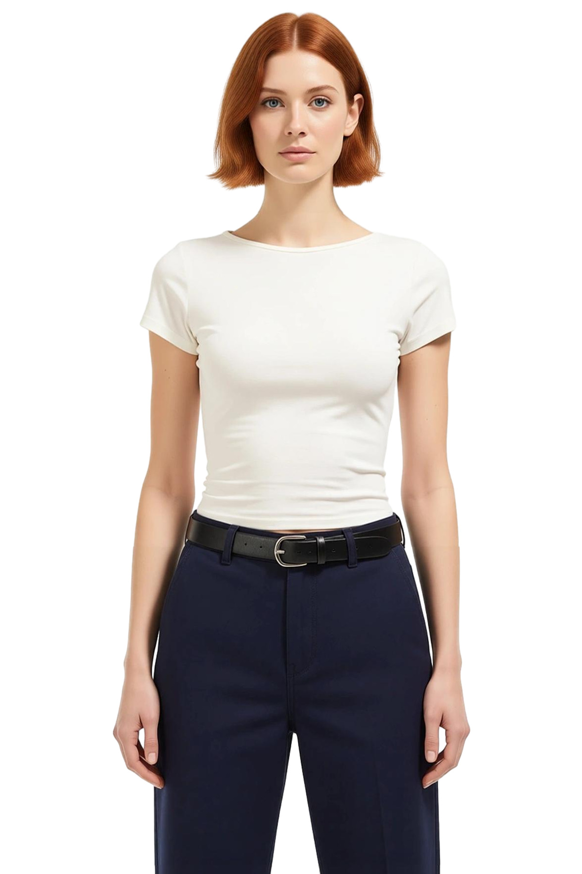 Kumaş Tipi:Örme, Renk:Ekru, Boy:Crop, Kalıp:Fitted, Yaka Tipi:Bisiklet Yaka, Kol Boyu:Kısa, Ürün Detayı:Sırt Dekolteli, Siluet:Basic, Dokuma Tipi:Likralı Penye Süprem, Materyal Bileşeni:96% Pamuk, 4% Elastan, Yıkama Talimatı:T01, Menşei:TR