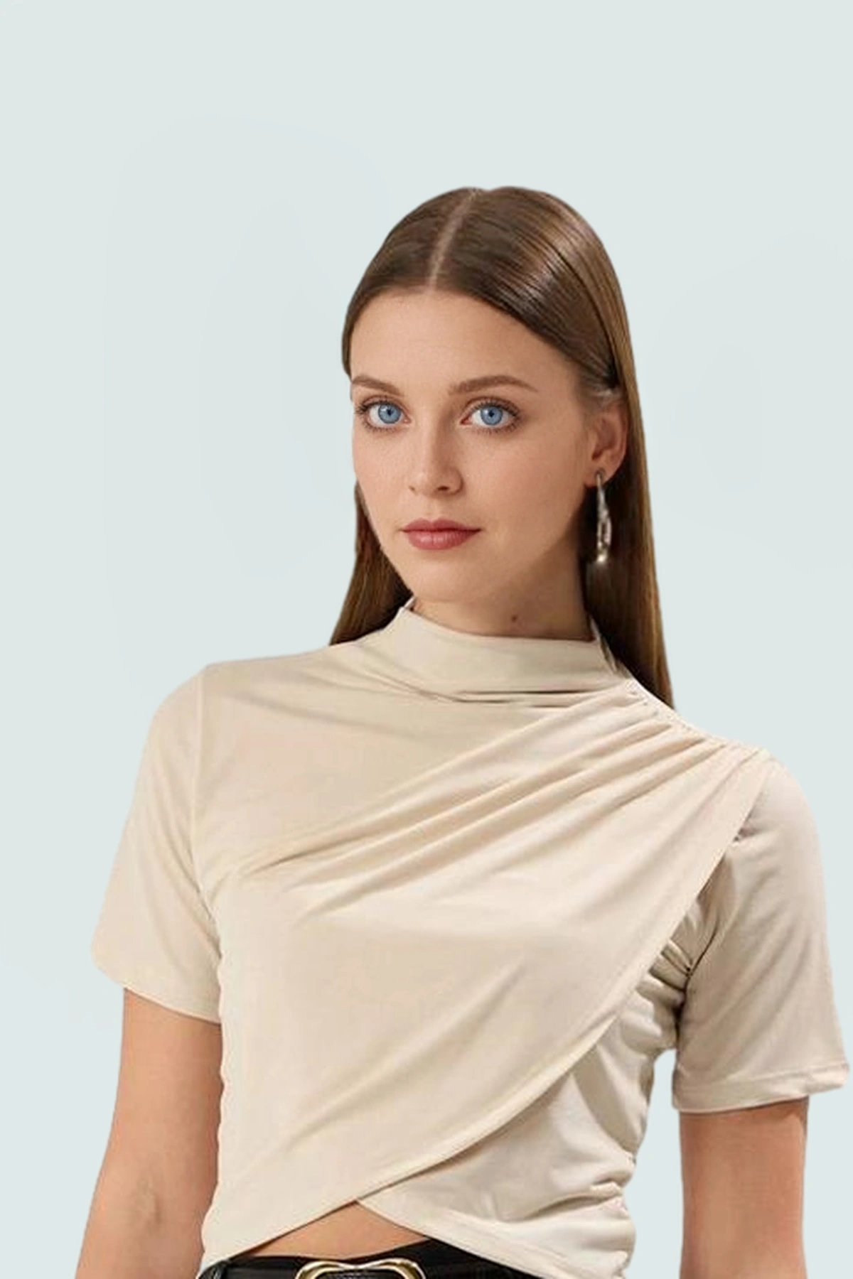 Yüksek kaliteli 97% polyester ve 3% elastan karışımı kumaştan üretilen bu bluz, uzun ömürlü kullanım sunar. Fitted kalıbıyla vücudunuzu mükemmel şekilde sarar. Büzgü/drape detayıyla benzersiz bir stil yakalarsınız. Cepsiz tasarımıyla minimal bir şıklık sunar. Bakımı oldukça kolaydır; makinede yıkanabilir.