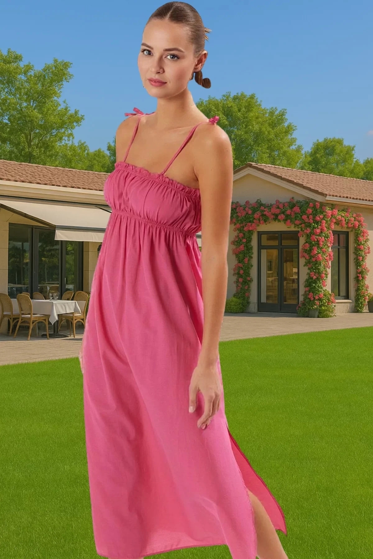 Yazlık Şık Sırt Dekolteli Maxi Viskoz Elbise Rahat A line Kalıp Dayanıklı Malzeme Seçkin Malzeme