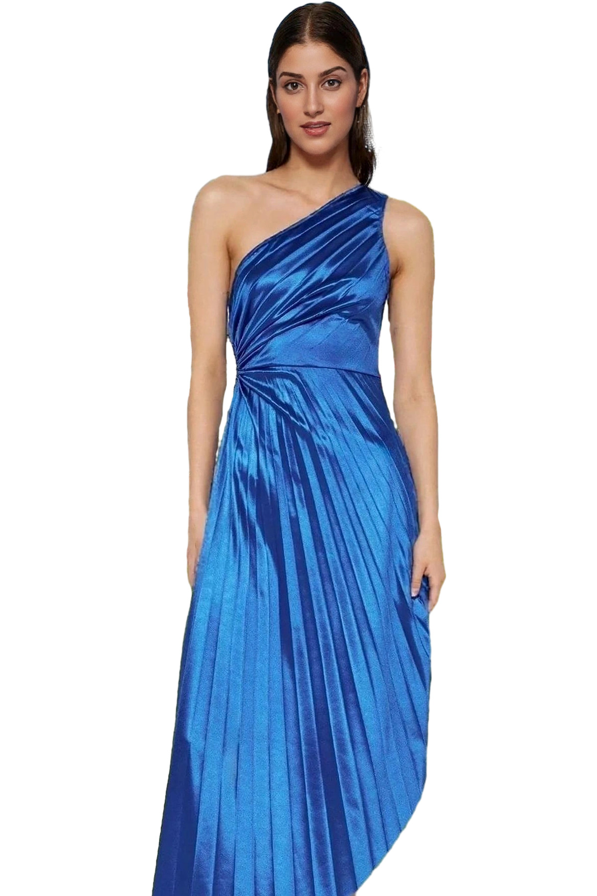 Bu şık ve modern elbise, özel günlerinizde göz kamaştırıcı bir görünüm elde etmenizi sağlayacak. Tek omuz tasarımı ve pilise detaylarıyla dikkat çekici bir stile sahip olan elbise, kaliteli saten kumaşından üretilmiştir. Rahat ve şık bir kullanım sunan elbise, vücut hatlarınızı zarifçe sararak feminenliğinizi ön plana çıkarır.