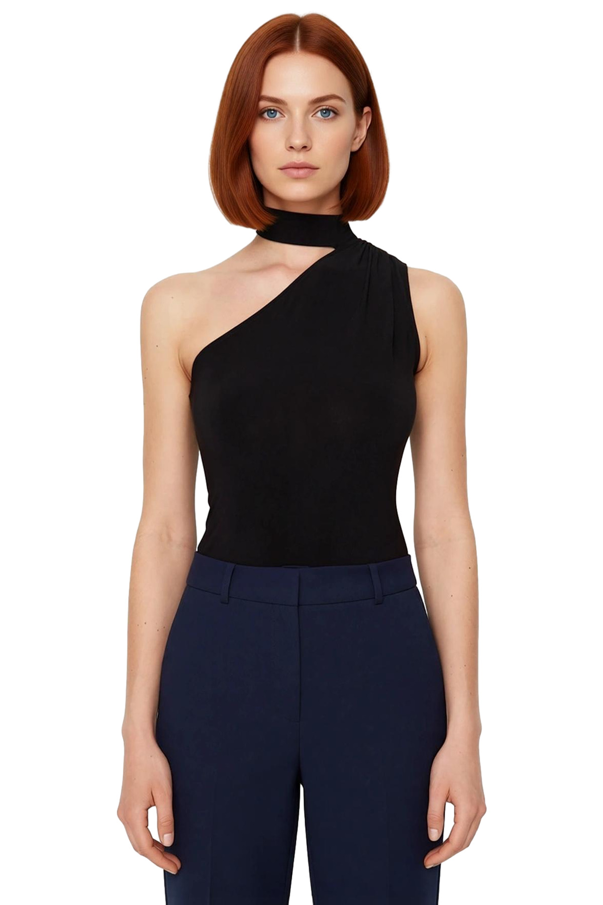 Siyahın asaleti ve tek omuzlu tasarımın modernliği, bu bluzla buluşuyor! Vücut hatlarınızı mükemmel şekilde saran, esnek ve nefes alan örme kumaştan üretilen bu bluz, gün boyu rahatlık sunar. Choker yakasıyla şıklığınıza şıklık katarken, regular boyu ile her vücut tipine uyum sağlar. Cepsiz tasarımıyla minimalist bir stil yakalayabilirsiniz. Kalın sandy dokuma ile uzun ömürlü kullanım garantisi sunar. Hem gündüz hem de gece kombinlerinizde rahatlıkla kullanabileceğiniz bu çok yönlü bluz, gardrobunuzun vazgeçilmez parçalarından biri olacak.