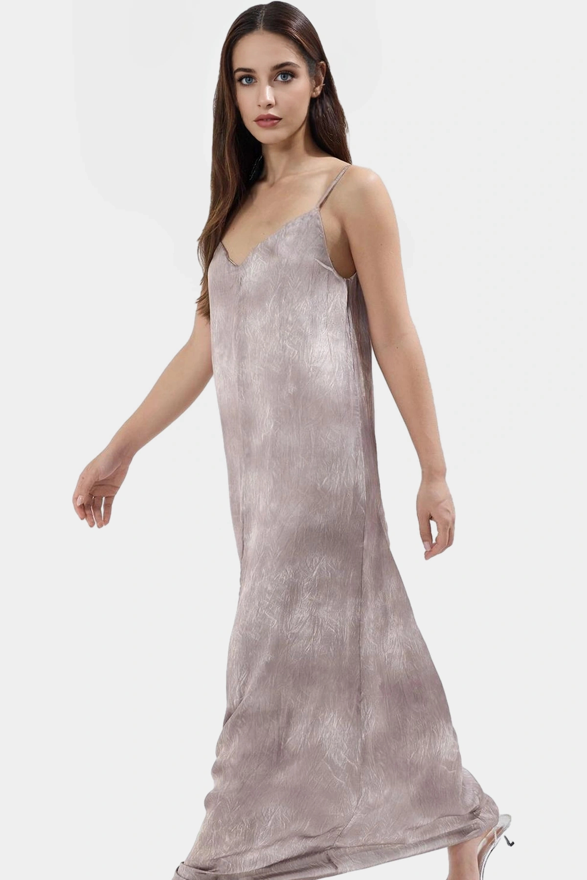 Yaz sıcağında şık ve rahat hissetmek için ideal bir seçim olan bu maxi elbise, benzersiz tasarımı ve yüksek kalitesiyle dikkat çekiyor. Saten dokusuyla hafif ve nefes alabilir bir yapıya sahip olan elbise, gün boyu konfor sunar. Soyut desenleri ve V yakasıyla modern ve feminen bir görünüm oluştururken, geniş kesim rahatlığıyla da ön plana çıkıyor.
