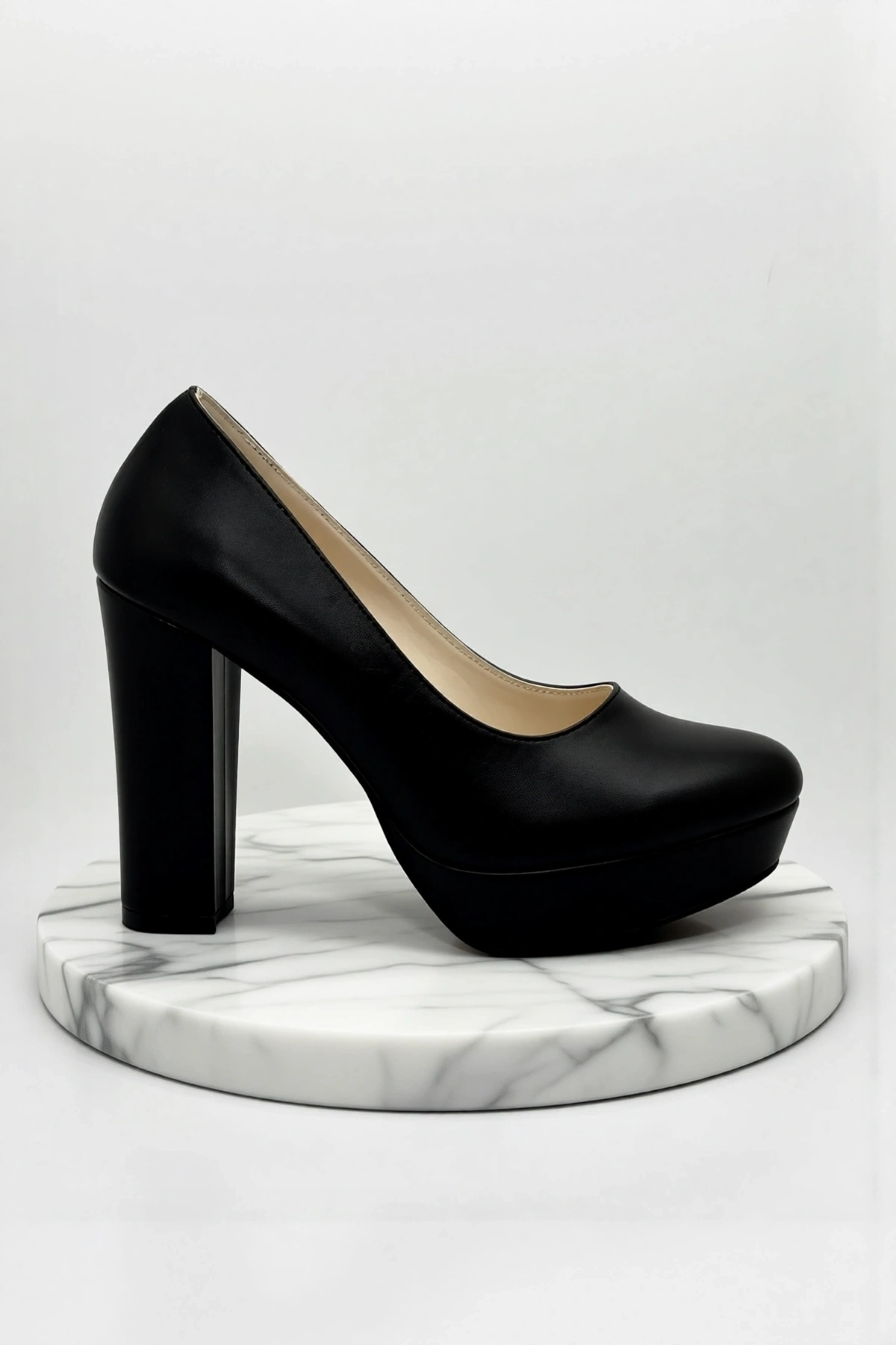 Klasik ve zamansız tasarımıyla her kıyafetle uyum sağlayan düz desenli siyah topuklu ayakkabı, şıklığınızı tamamlar.