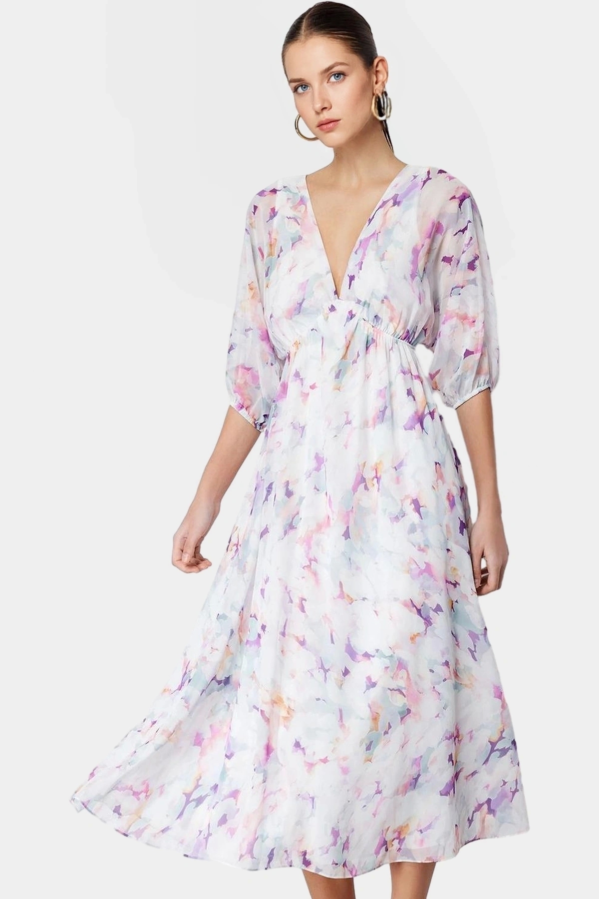 %100 polyester materyalden üretilen elbise, dayanıklı ve uzun ömürlüdür. Dokuma kumaş yapısı, yumuşak dokusuyla teninizde harika bir his bırakacaktır. Eteği belden açılan tasarımı sayesinde rahat hareket edebilir ve şık bir siluete sahip olabilirsiniz. Kolay bakım özelliği sayesinde, makinede yıkanabilir ve uzun yıllar boyunca kullanabilirsiniz.