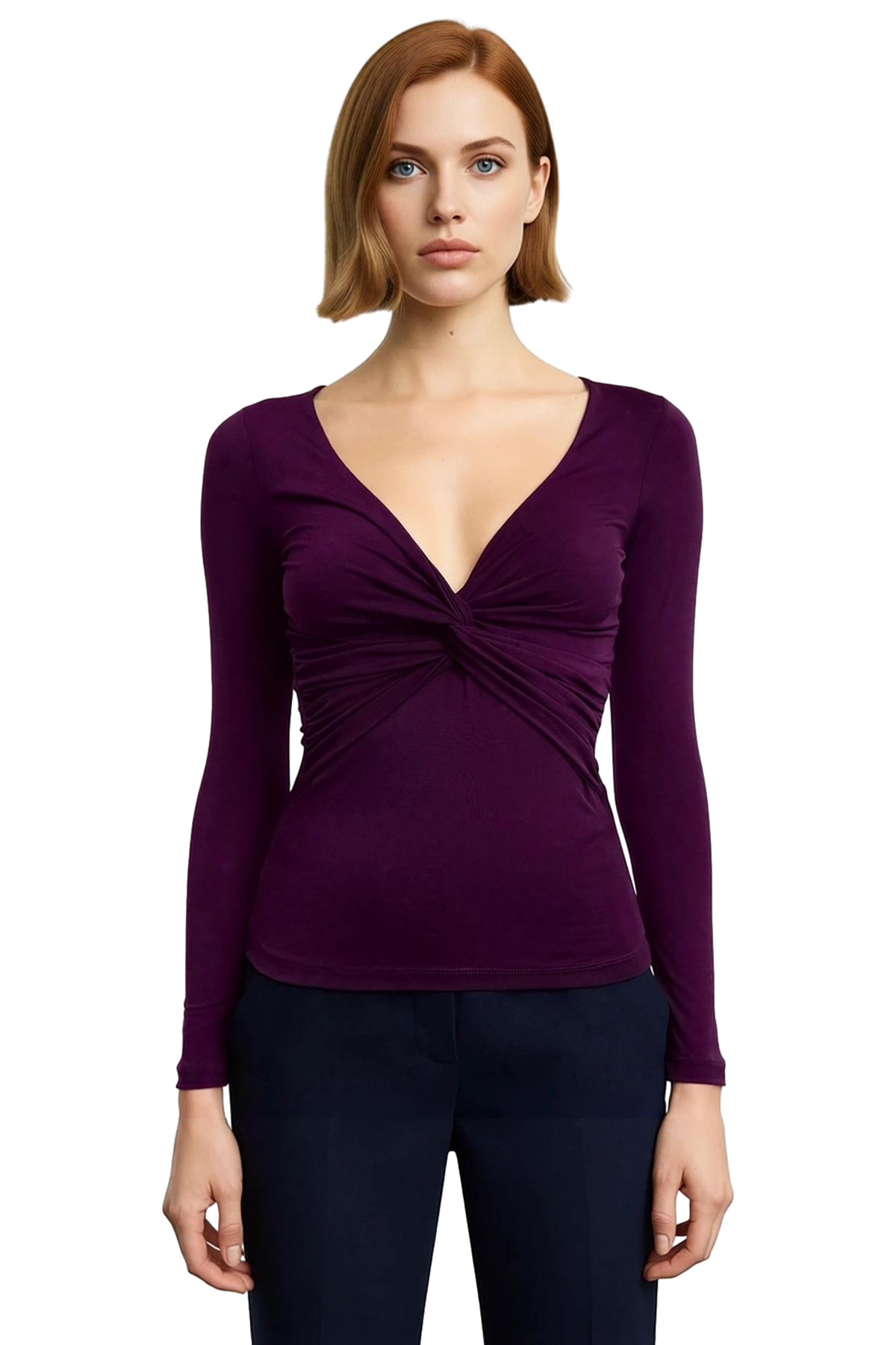 Desen:Düz Yaka Tipi:V Yaka Materyal:Polyester Kol Tipi:Standart Kol Kalıp:Slim Kumaş Tipi:Örme Renk:Mor Cep:Cepsiz Ürün Tipi:Düz Astar Durumu:Astarsız Boy:Crop Kol Boyu:Uzun Ortam:Casual/Günlük Siluet:Basic Dokuma Tipi:Sandy Persona:Cool & Comfort Kemer/Kuşak Durumu:Kemersiz Sürdürülebilirlik Detayı:Hayır Materyal Bileşeni:100% Polyester Yıkama Talimatı:Hassas Yıkama Yaş:Tüm Yaş Grupları Model Bilgisi: Modelin Ölçüleri: Boy: 176cm(59) Göğüs 86cm(33in) Bel: 61cm(24in) Kalça: 89cm(35İn).