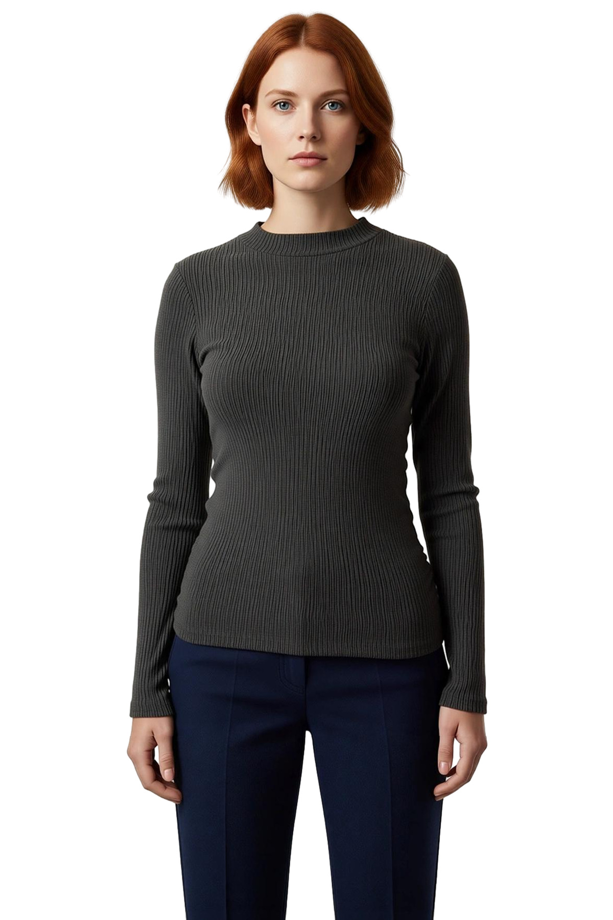 Desen:Düz Yaka Tipi:Dik Yaka Materyal:Polyester Karışımlı Kol Tipi:Standart Kol Kalıp:Slim Kumaş Tipi:Örme Renk:Gri Cep:Cepsiz Ürün Detayı:Büzgülü Ürün Tipi:Düz Astar Durumu:Astarsız Boy:Regular Kol Boyu:Uzun Ortam:Casual/Günlük Siluet:Basic Dokuma Tipi:Bürümcük Persona:Cool & Comfort Kemer/Kuşak Durumu:Kemersiz Sürdürülebilirlik Detayı:Hayır Materyal Bileşeni:99% Polyester, ,1% Elastan Yıkama Talimatı:Hassas Yıkama Yaş:Tüm Yaş Grupları Model Bilgisi: Modelin Ölçüleri: Boy: 176cm(59) Göğüs: 80cm(31in) Bel: 59cm(23in) Kalça: 89cm(35in).