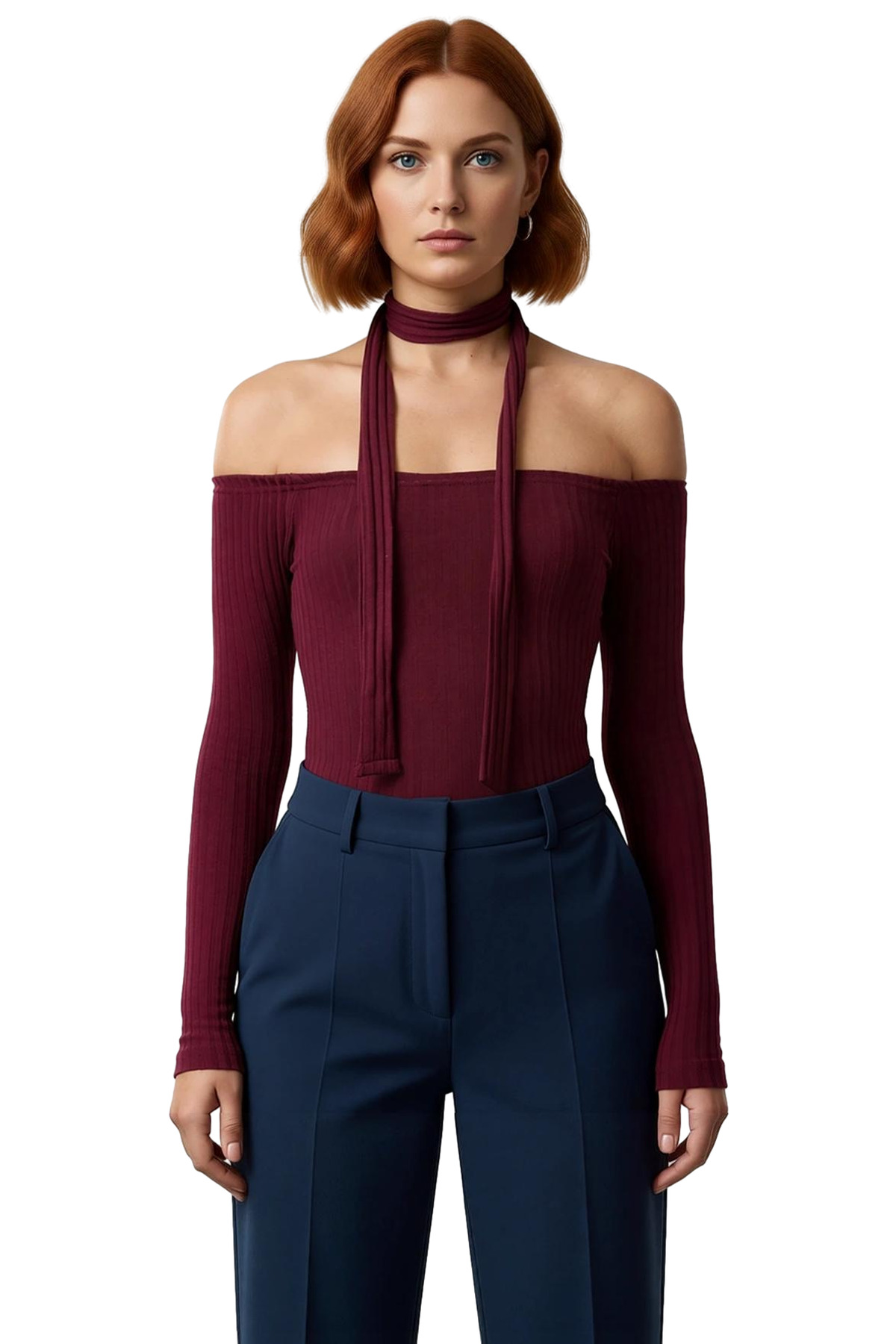 Stil Kadın Fitilli Şal Detaylı Fitted Vücuda Oturan Esnek Bluz Crop Örme Slim Kalıp Feminen ve zarif detaylarla tasarlanmış bu kadın bluzu, her kadının gardırobunda bulunması gereken kurtarıcı parçalardan biri.