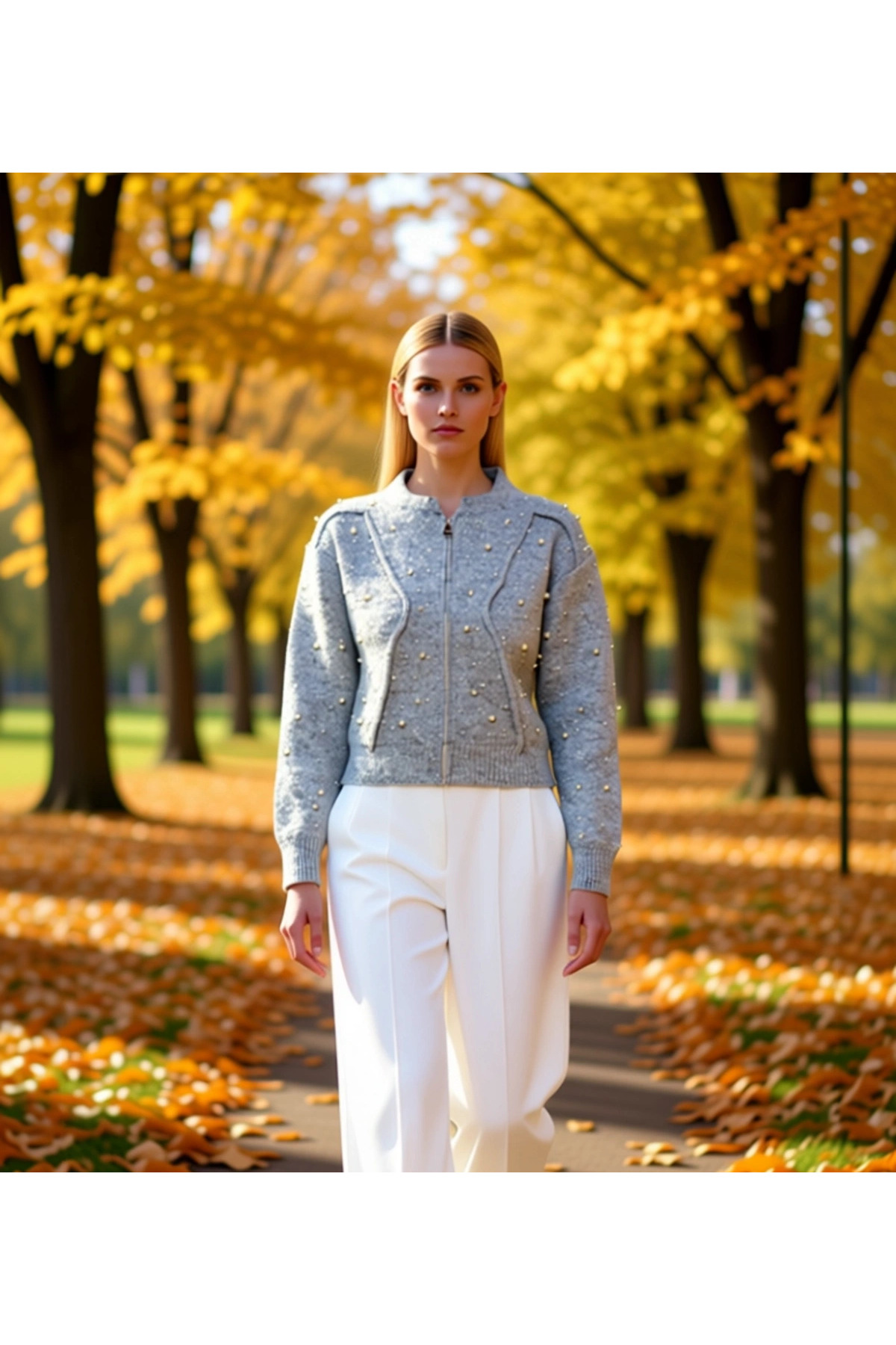Stil Kadın Regular Standart Kol Bomber Yaka Yumuşak Fermuarlı Taşlı Mont Görünümlü Triko Hırka