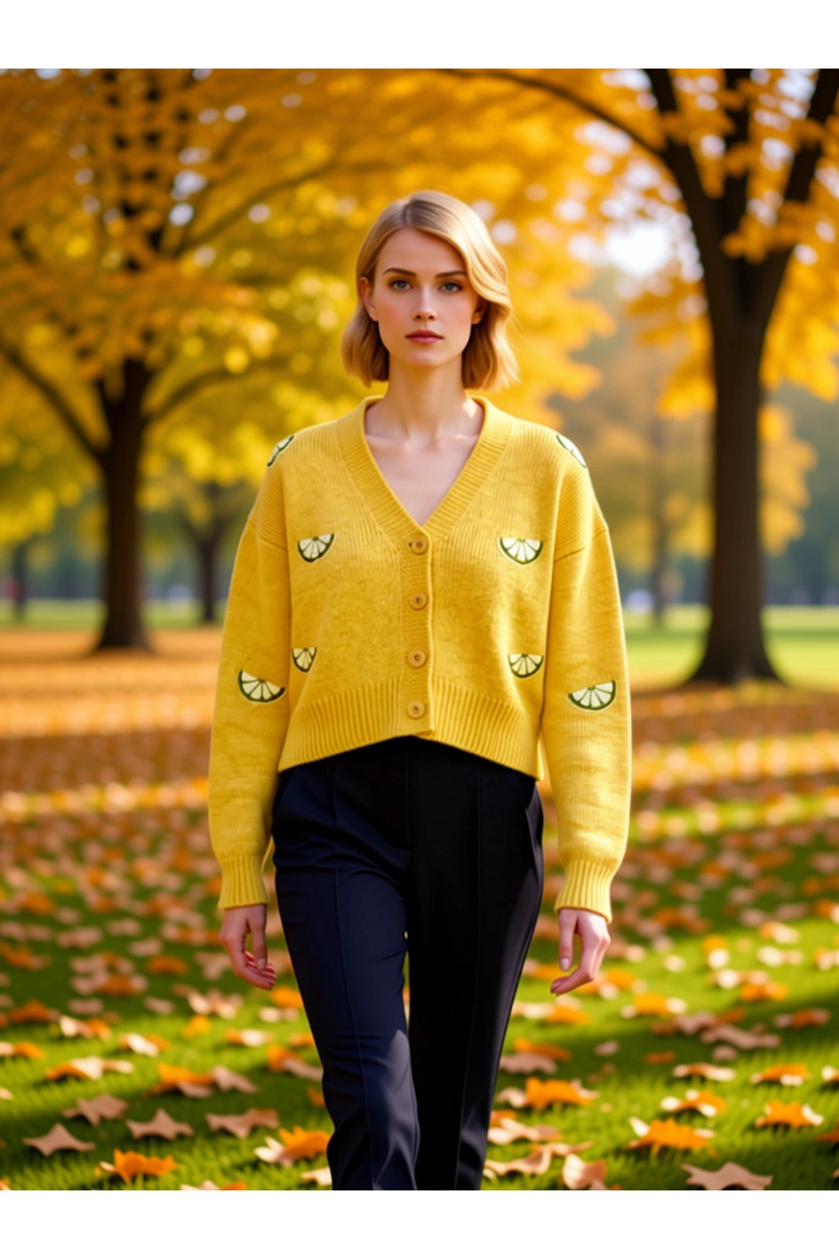 Stil Modern Kadın Regular Düşük Kol V Yaka Yumuşak Dokulu Nakış Detaylı Triko Hırka