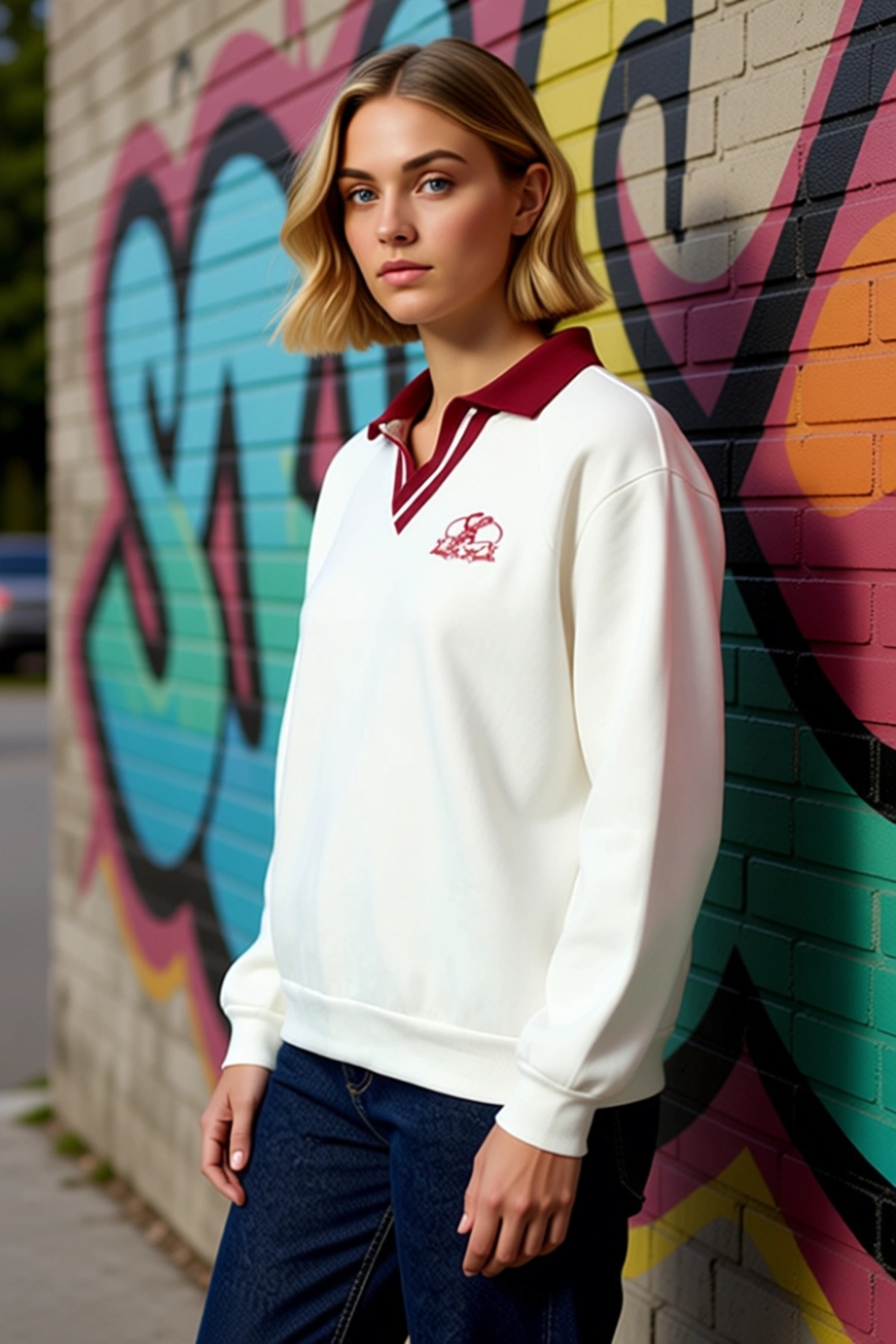 Tarz Bol Polo Yaka Düşük Kol Uzun Nakışlı Gneiş Kalıp Kalın İçi Polarlı Örme Sweatshirt | Bu kadın sweatshirt, rahatlığı ve modern tarzı bir araya getirerek hem günlük giyimde hem de şık kombinlerde kendine yer buluyor. Yumuşak kumaşı sayesinde gün boyu konfor sunan bu sweatshirt, sade ama dikkat çekici tasarımı ile her ortama uyum sağlar. Hem spor hem de casual kombinlerinizde kullanabileceğiniz bu model, şıklığı ve rahatlığı seven kadınlar için ideal bir tercihtir. | Model Bilgisi: Modelin Ölçüleri: Boy: 176cm(59) Göğüs: 80cm(31in) Bel: 59cm(23in) Kalça: 89cm(35in). | Mankenin üzerindeki ürün S368 bedendir.. | Materyal Bileşeni: 57% Pamuk,43% Polyester. | Kumaş Tipi: Örme. | Model Ön Boyu: 66,0 cm. | Ürününüzü daha uzun süreli kullanabilmeniz ve ürününüze uygun bakım yapabilmeniz için lütfen aşağıda belirtilen yıkama talimatına uyunuz.. | OversizeGeniş Kalıp: Üzerinizde bir beden büyük geliyormuş gibi duran bol ve salaş kalıptır. Pantolon, tayt ve eşofman altları ile rahatça kombinlenebilecek bu kalıp size çok çeşitli stil alternatifleri sunacak!. | Stüdyo çekimlerinde renkler ışık farklılığından dolayı değişiklik gösterebilir.. | | Desen:Slogan | Kalıp:Bol | Yaka Tipi:Polo Yaka | Kol Tipi:Düşük Kol | Kumaş Tipi:Örme | Renk:Ekru | Kol Boyu:Uzun | Ortam:Casual/Günlük | Boy:Uzun | Siluet:Basic | Dokuma Tipi:3 İplik Şardonlu | Persona:Fashion Forward | Sürdürülebilirlik Detayı:Hayır | Materyal Bileşeni:57% Pamuk, ,43% Polyester | Yıkama Talimatı:T10 | Yaş:Tüm Yaş Grupları |