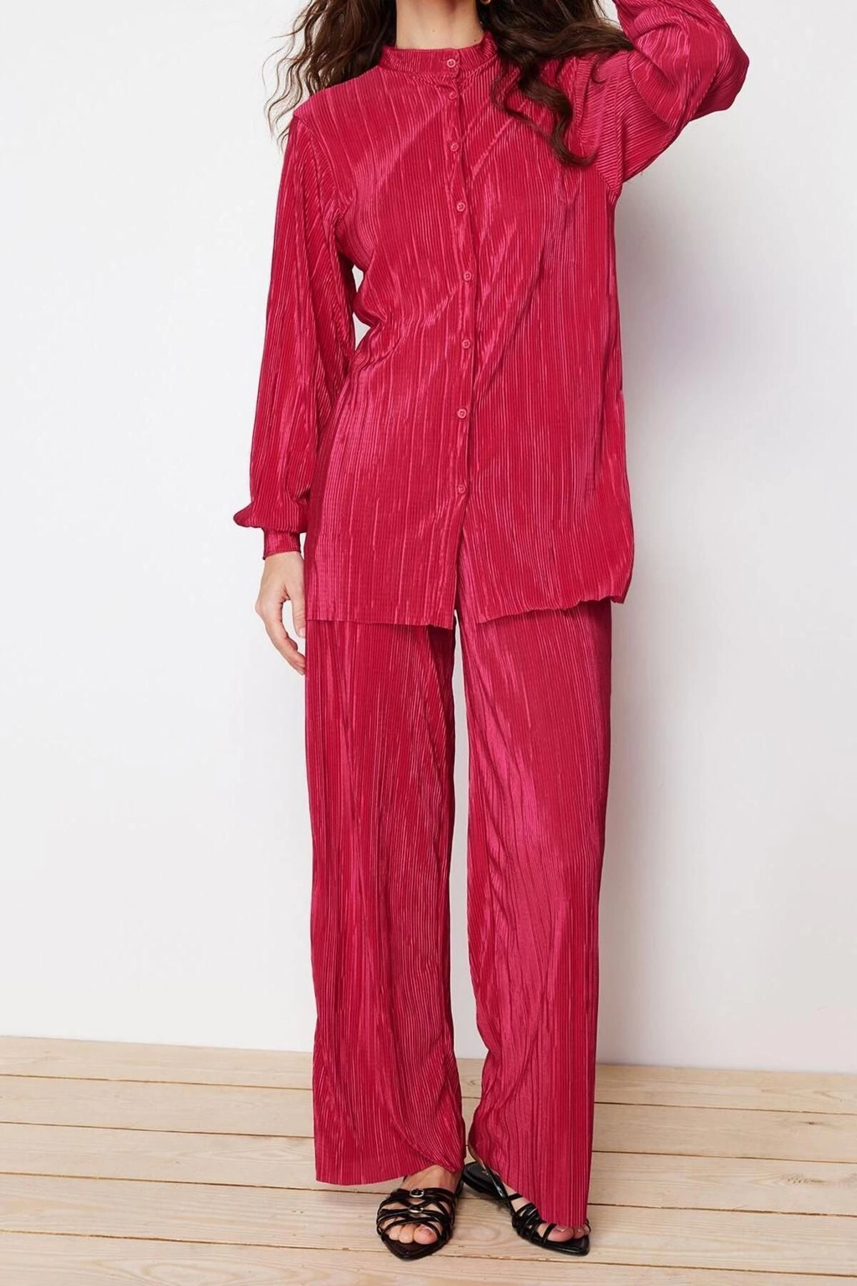 Tarz Kadın Modern Moda Normal Bel Boru Paça V Yaka Piliseli Örme Alt-Üst Takım – Bu kadın alt üst takım, rahatlığı ve zarafeti bir araya getirerek her ortamda şıklığınızı tamamlar. Hafif ve yumuşak kumaşı ile gün boyu konfor sunarken, zarif tasarımı sayesinde iş veya günlük giyimde kolayca tercih edilebilir. Esnek bel yapısı ve modern kesimi hareket özgürlüğü sağlarken, farklı renk seçenekleriyle her tarza uyum sağlar. Bu takım, günlük stilinize konfor katarken şıklığı da yanınızda taşımanıza olanak tanır. – Model Bilgisi: Modelin Ölçüleri: Boy: 175cm(59) Göğüs: 82cm(32in) Bel: 60cm(23in) Kalça: 91cm(35in). – Mankenin üzerindeki ürün S368 bedendir.. – Materyal Bileşeni: 100% Polyester. – Kumaş Tipi: Örme. – Model Ön Boyu: 75,0 cm. – Ürününüzü daha uzun süreli kullanabilmeniz ve ürününüze uygun bakım yapabilmeniz için lütfen aşağıda belirtilen yıkama talimatına uyunuz.. – Stüdyo çekimlerinde renkler ışık farklılığından dolayı değişiklik gösterebilir.. – – Kalıp:Regular – Kumaş Tipi:Örme – Desen:Düz – Renk:Lacivert – Cep:Cepsiz – Kol Boyu:Uzun – Kol Tipi:Standart Kol – Dokuma Tipi:Bürümcük – Sürdürülebilirlik Detayı:Hayır – Siluet:Wide Leg – Boy:Uzun – Persona:Cool & Comfort – Ortam:Casual/Günlük – Materyal Bileşeni:100% Polyester – Yıkama Talimatı:T10 – Yaş:Tüm Yaş Grupları –