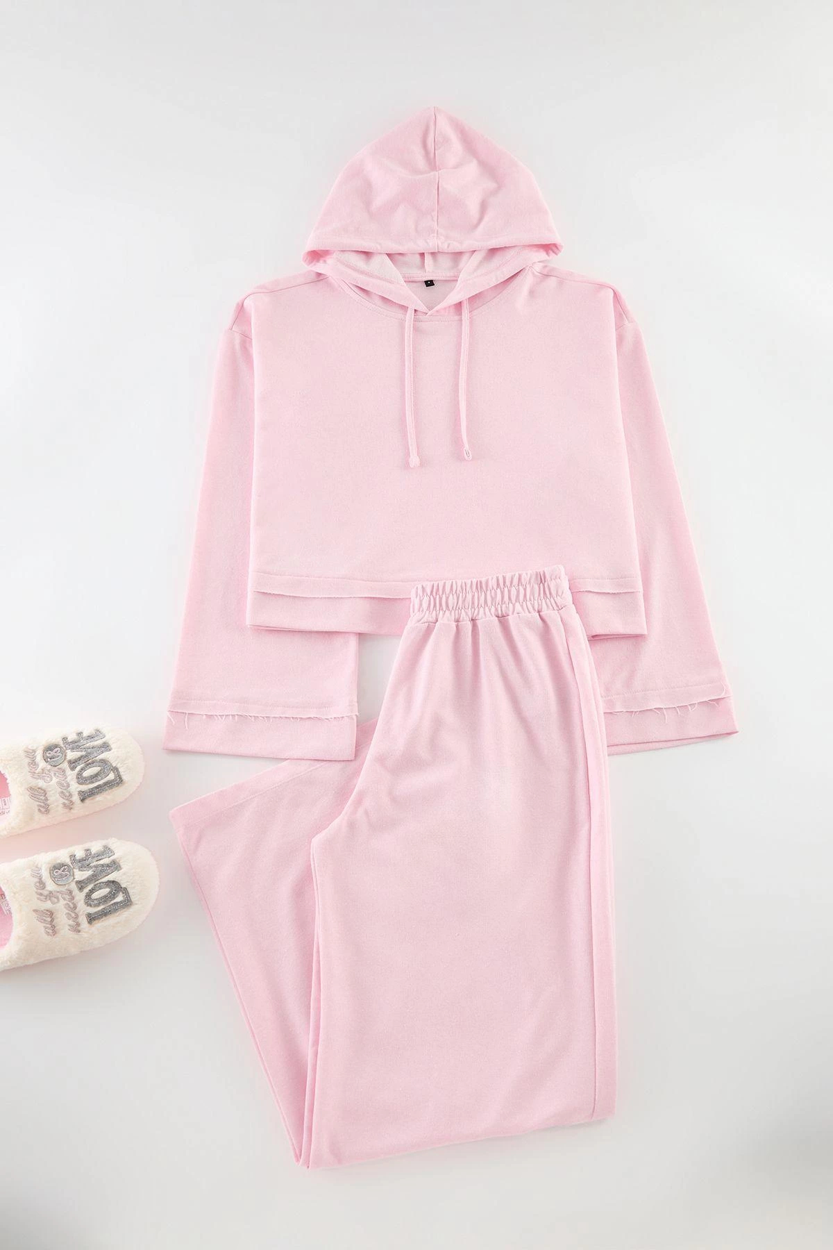 Tarz Rahat Uzun Kollu Geniş Paça Geniş Kalıp Örme Pijama Takımı