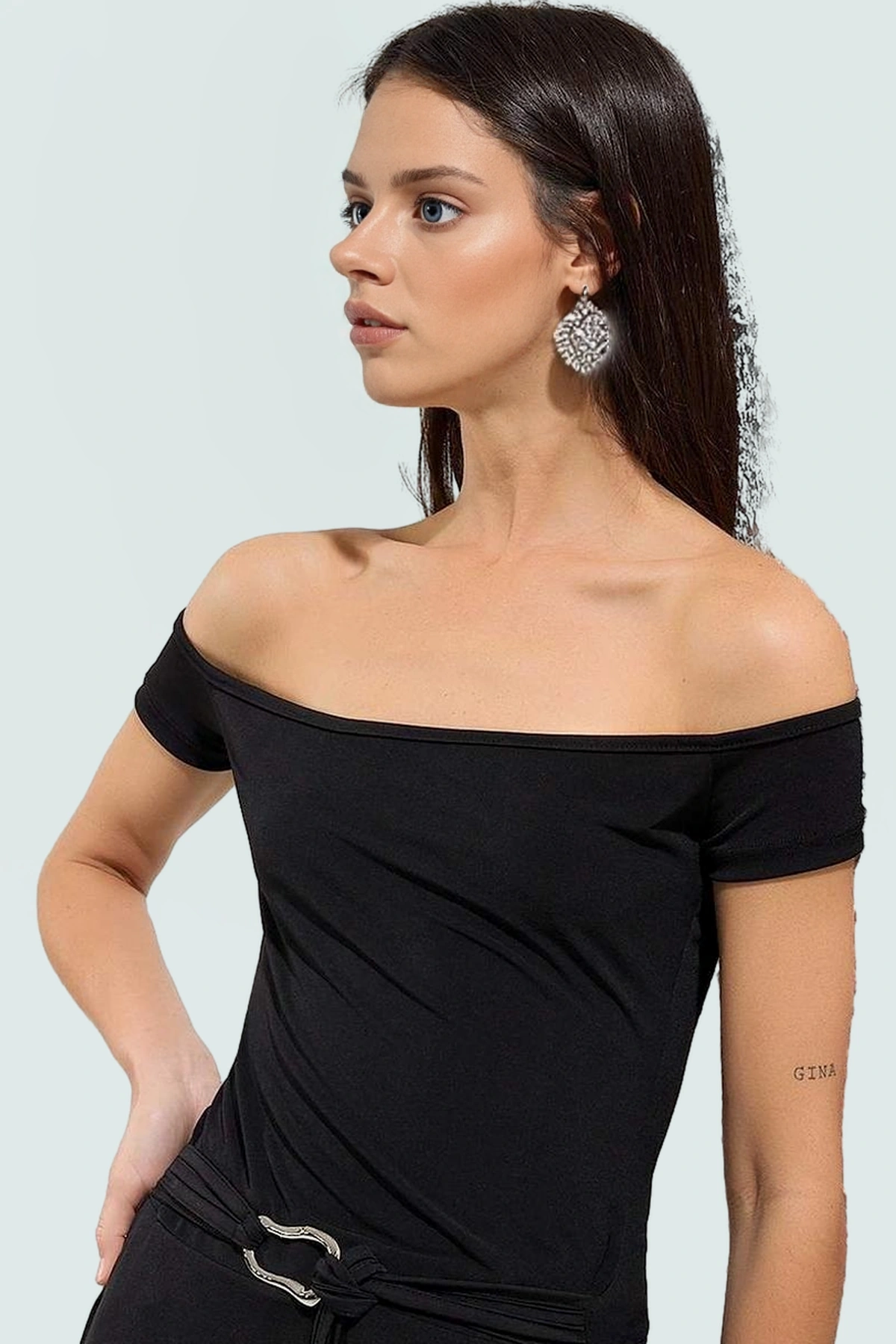 Yüksek kaliteli 95% polyester ve 5% elastan karışımı kumaş, mükemmel bir uyum ve dayanıklılık sağlar. Esnek yapısı sayesinde hareket özgürlüğünüzü kısıtlamaz ve tüm gün rahat hissetmenizi garanti eder. Kısa kol tasarımı ve omuzları açıkta bırakan stiliyle sıcak havalarda serin kalmanıza yardımcı olur. Aksesuar detayları, bluza sofistike bir dokunuş katar.