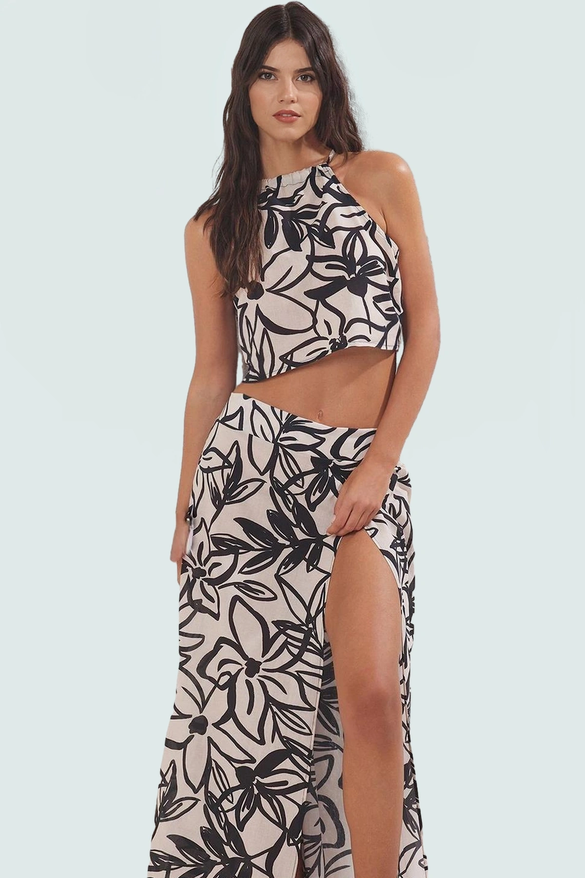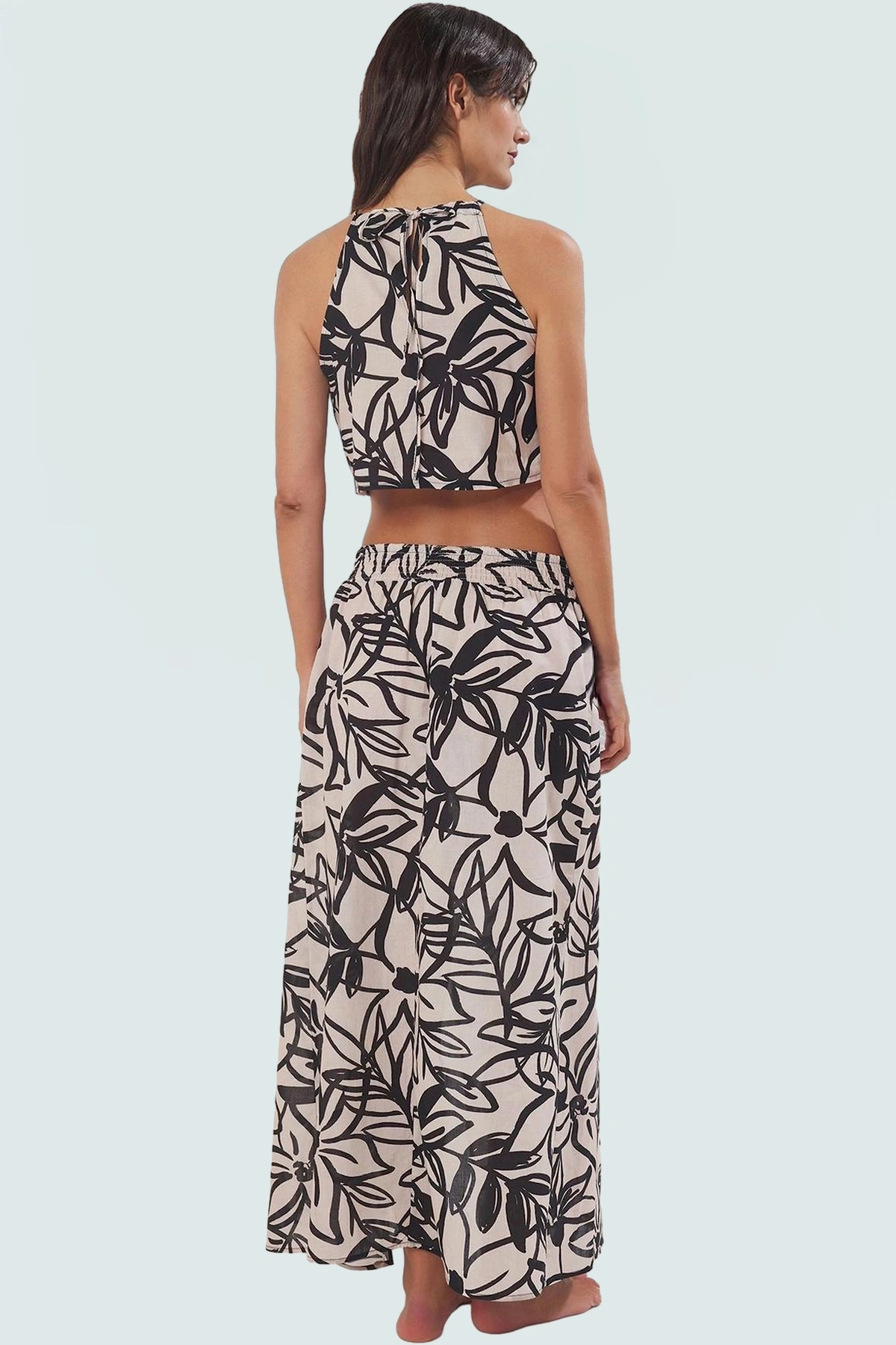 Modelin ölçüleri (Boy: 180cm, Göğüs: 80cm, Bel: 60cm, Kalça: 89cm) ve mankenin S (36) beden giydiği bilgisiyle, size en uygun bedeni seçebilirsiniz. Bu takım, sadece plaj için değil, yaz akşamlarında da şık ve rahat bir görünüm için ideal. Birbirinden farklı aksesuarlarla kombinleyerek, tarzınızı özgürce ifade edebilirsiniz. Bu yazın trend parçası olan bu takımı kaçırmayın!