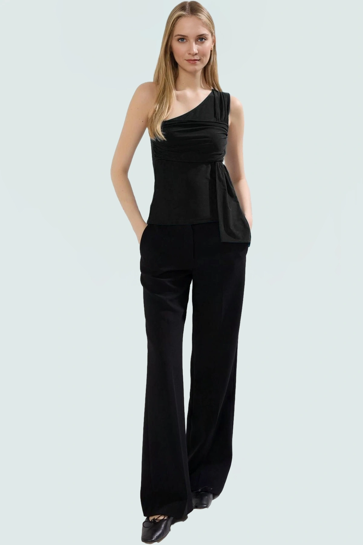 Vücuda Oturan Bluz Regular Boy Asimetrik Yaka Polyester Elastan Kumaş Kaliteli İşçilik