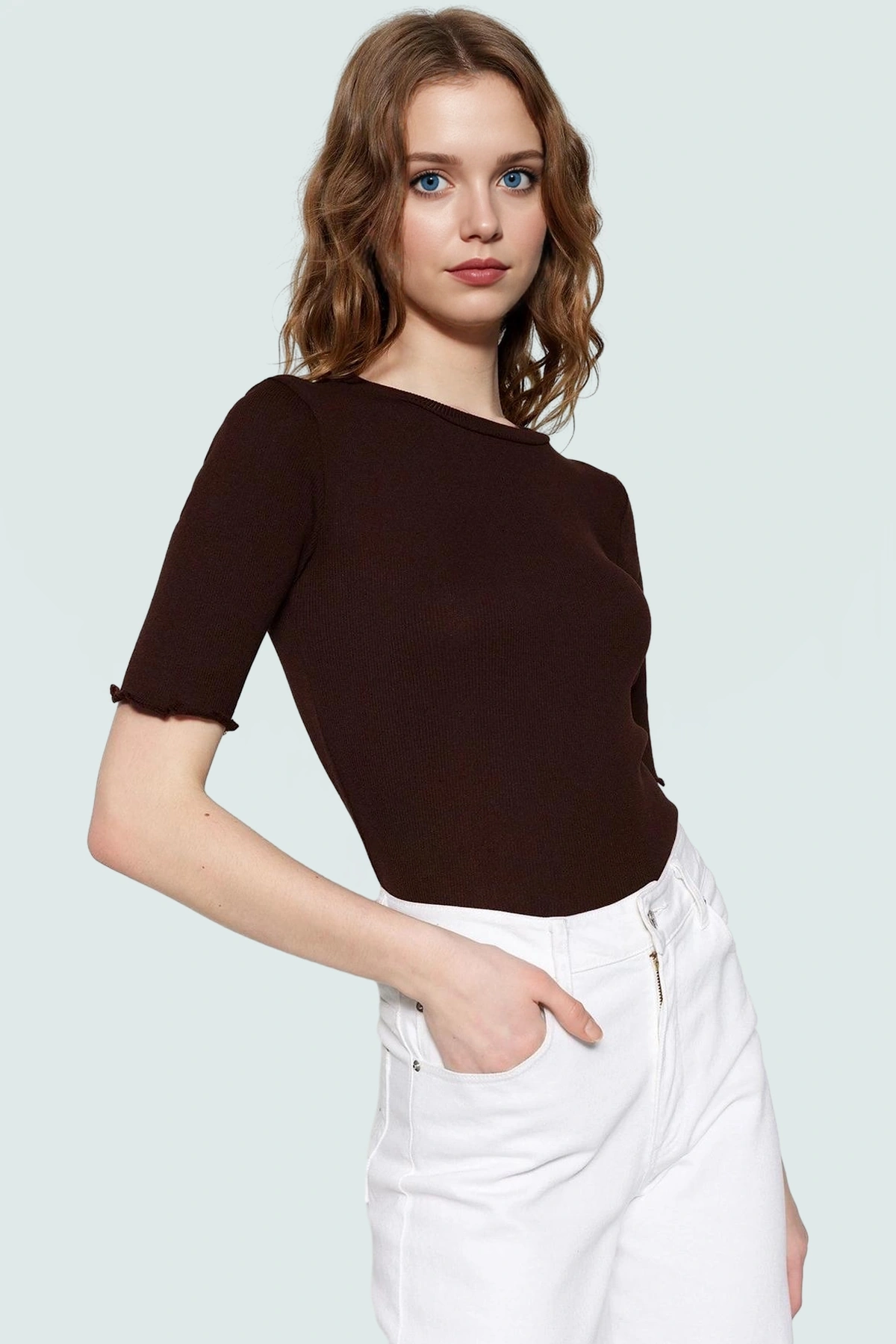 Bu sezonun trendlerinden olan vücuda oturan gri bluz, şıklığı ve rahatlığıyla dikkat çekiyor. Kaşkorse dokuma tekniğiyle üretilen örme kumaş, hem yumuşak bir his sunuyor hem de dayanıklılığını koruyor. Bisiklet yakası, boynunuzu zarifçe çerçevelerken, kısa kolları yaz aylarında serin kalmanızı sağlıyor. Fitted kalıbıyla vücut hatlarınızı güzelce sergilerken, rahat bir kullanım imkanı sunuyor.