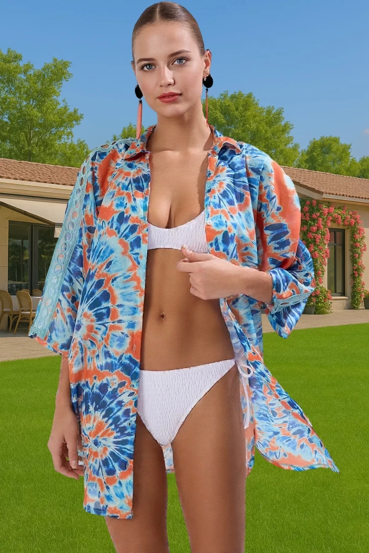 Yazın sıcak günlerinde serin ve şık kalmanızı sağlayacak bu mini plaj elbisesi, benzersiz tasarımıyla dikkatleri üzerinize çekecek. %100 pamuk vual kumaştan üretilen elbise, nefes alabilir yapısıyla gün boyu konfor sunar. Canlı renklerdeki soyut desenler, plaj stilinize enerjik bir dokunuş katarken, truva kol detayı ve ince şerit aksesuarları feminen bir hava oluşturur. Rahat ve şıklığı bir arada sunan bu elbise, yazın vazgeçilmez parçanız olacak.