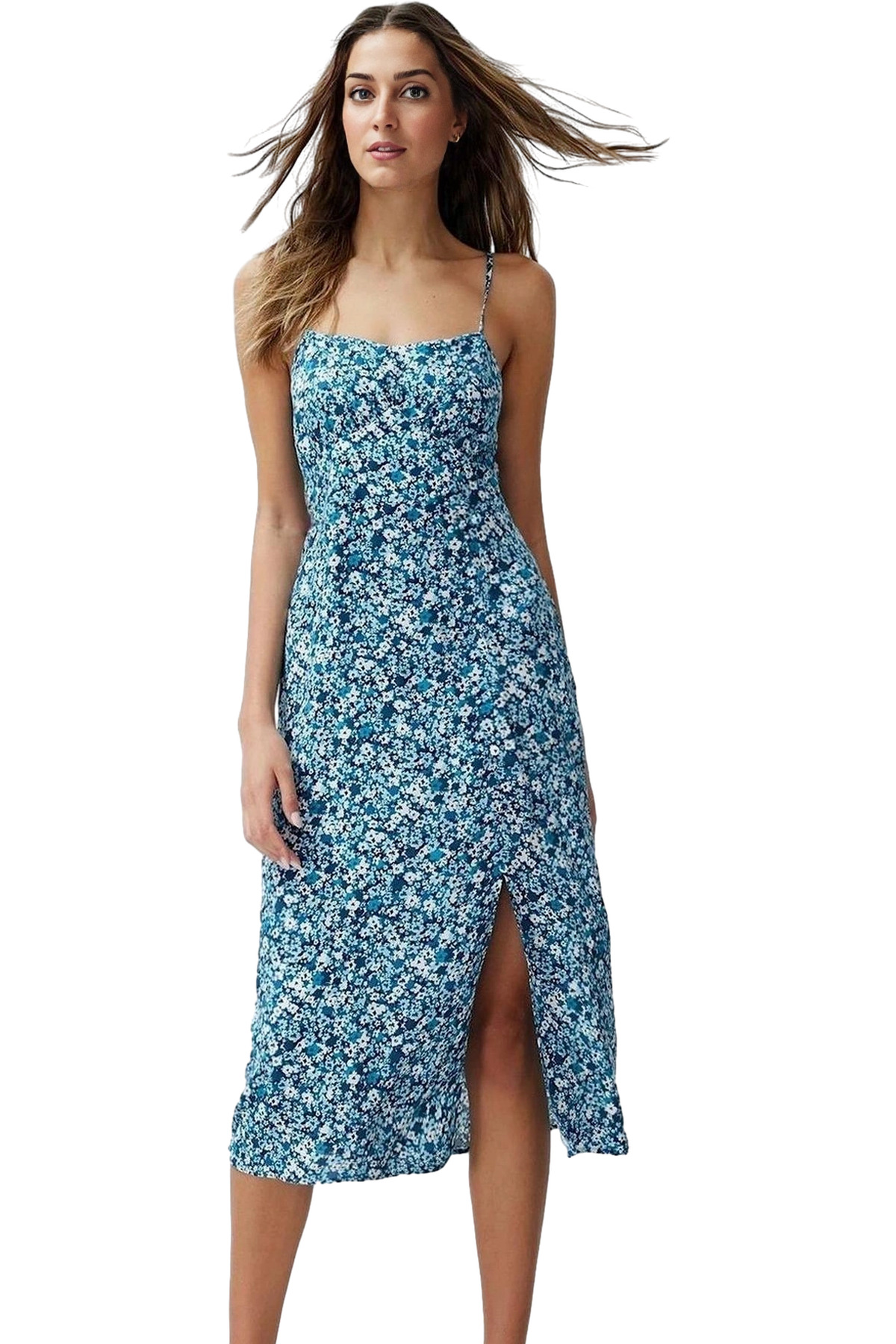 Yazlık A line Çiçek Desenli Midi Elbise Şık ve Rahat Yüksek Kalite