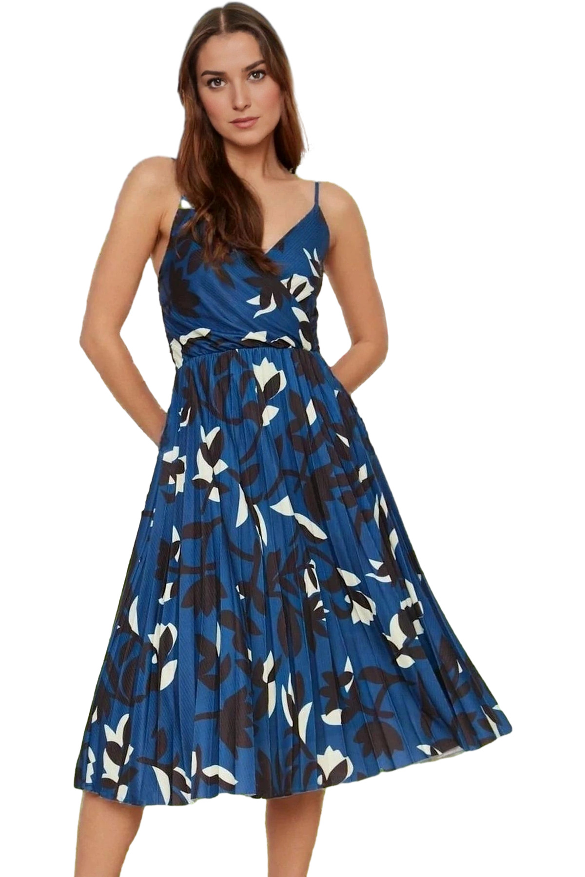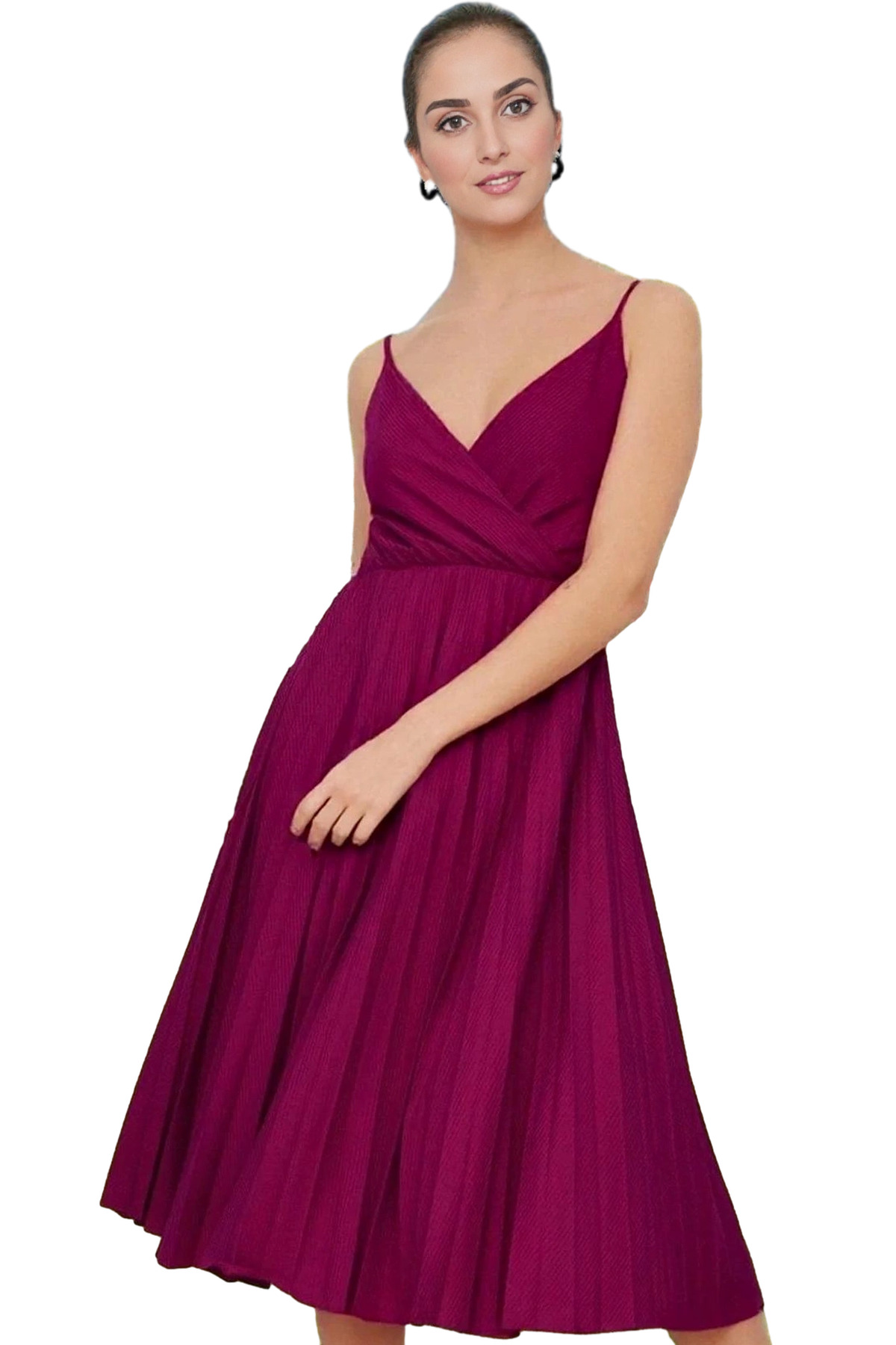 Sizi yazın sıcak günlerinde serin ve şık tutacak, rahat bir elbise arıyorsanız, işte tam size göre bir ürün! Bu ayarlanabilir askılı, pileli midi elbise, gün boyu konfor ve şıklık sunmak için tasarlandı. Hafif ve nefes alabilen yapısıyla sizi bunaltmayacak, rahat hareket etmenizi sağlayacak. V yakası ve pileli detaylarıyla feminen bir tarz yakalamanızı sağlayacak bu elbise, günlük kombinlerinizin vazgeçilmezi olacak.