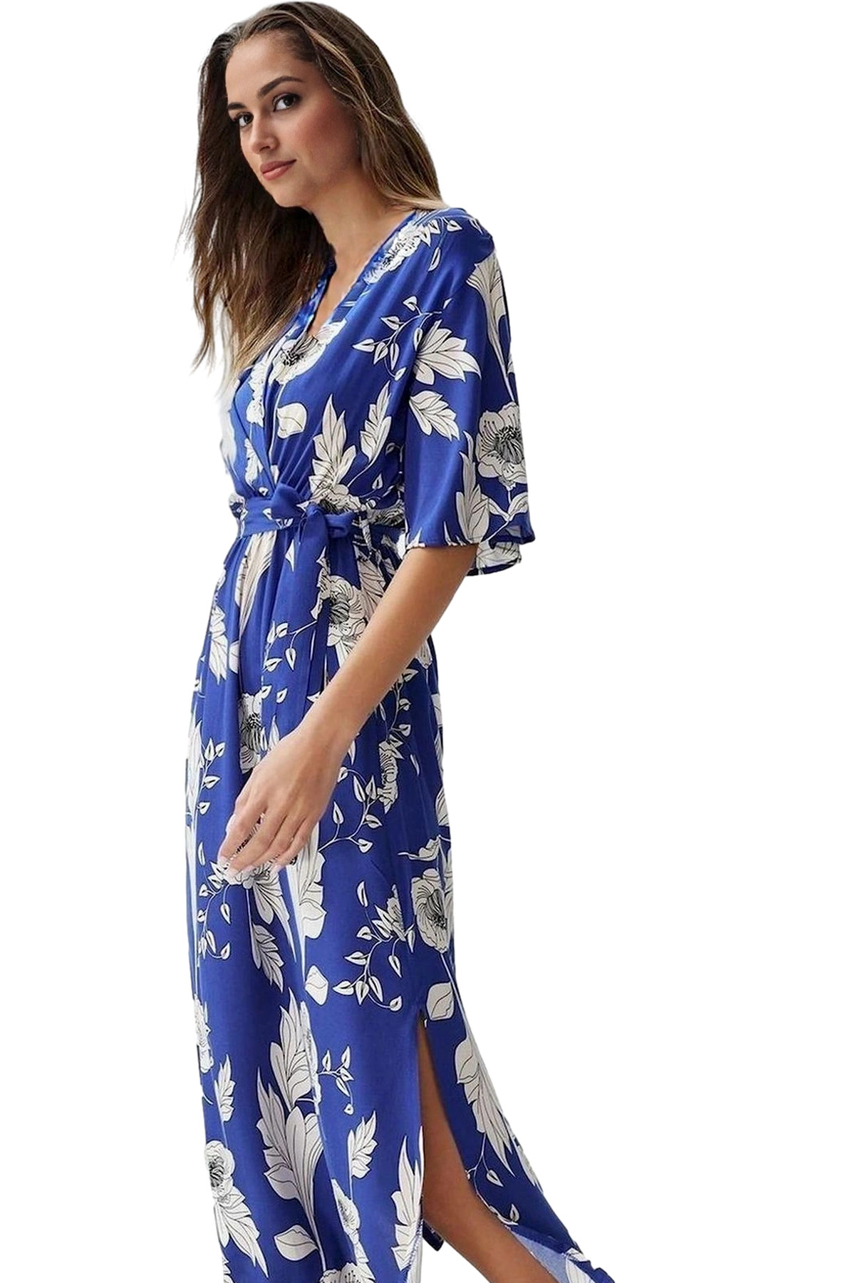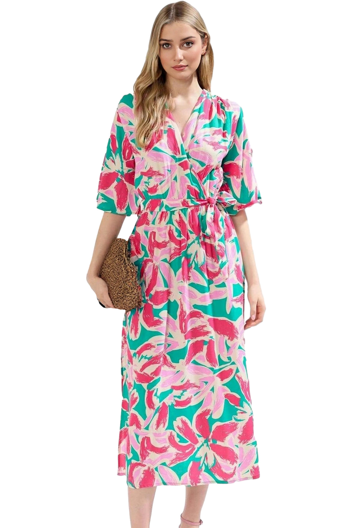 Sizi yazın sıcak günlerinde serin ve şık tutacak bir elbise arıyorsanız, doğru yerdesiniz! Bu çok renkli çiçek desenli maxi elbise, 100% viskoz kumaştan üretilmiş olup, nefes alabilir ve rahat bir kullanım sunuyor. A kesim modeli ve lastikli detayıyla her vücut tipine mükemmel uyum sağlıyor. Kruvaze yakası ve kuşak detayı ise elbiseye zarif bir dokunuş katıyor.