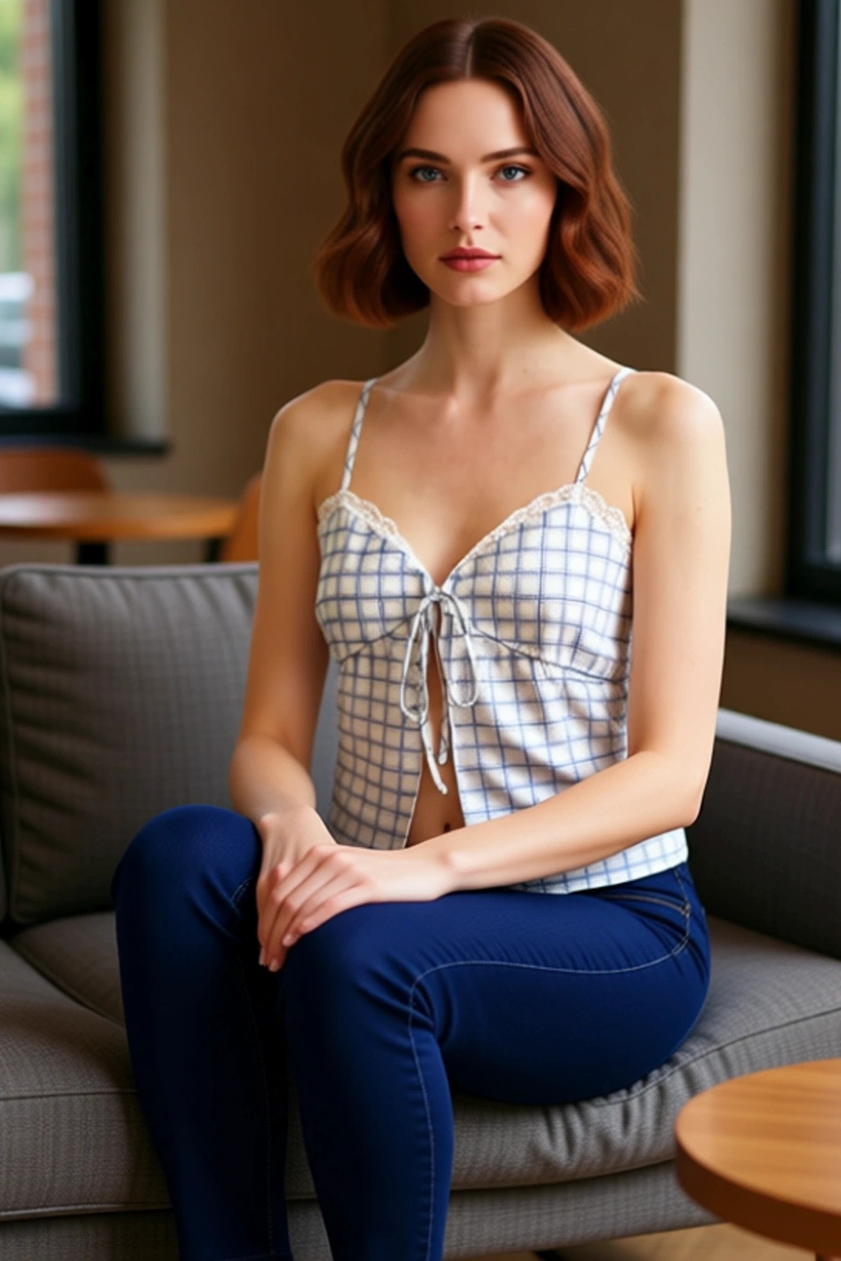 Saten dokusuyla göz kamaştırıcı, ekose deseniyle şık ve rahat bir yazlık bluz mu arıyorsunuz? İşte karşınızda, çok renkli ekose desenimizle tasarlanmış, ince askılı, crop kesimli, saten kumaşlı bluzumuz! Yaz aylarının sıcak günlerinde bile rahatlığınızı ve stilinizi korumanızı sağlayacak bu bluz, günlük yaşamınızda şıklığı ve konforu bir araya getiriyor. Kalp yakası ve bağlama detayıyla feminen bir hava katan bluz, mükemmel bir yazlık parça.
