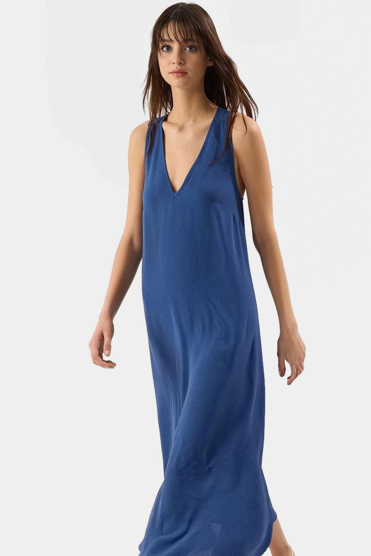 Bu sezonun en göz alıcı parçası olan Indigo Maxi Elbise ile tanışın! Hafif ve nefes alan 100% polyester dokuma kumaştan üretilen bu elbise, yaz sıcağında bile kendinizi serin ve rahat hissetmenizi sağlayacak. V yakası ve düz kesimiyle hem şık hem de rahat bir görünüm sunan elbise, günlük kullanım için ideal. Maxi boyu sayesinde her vücut tipine ve boyuna uyum sağlayarak, özgüveninizi artıracak.