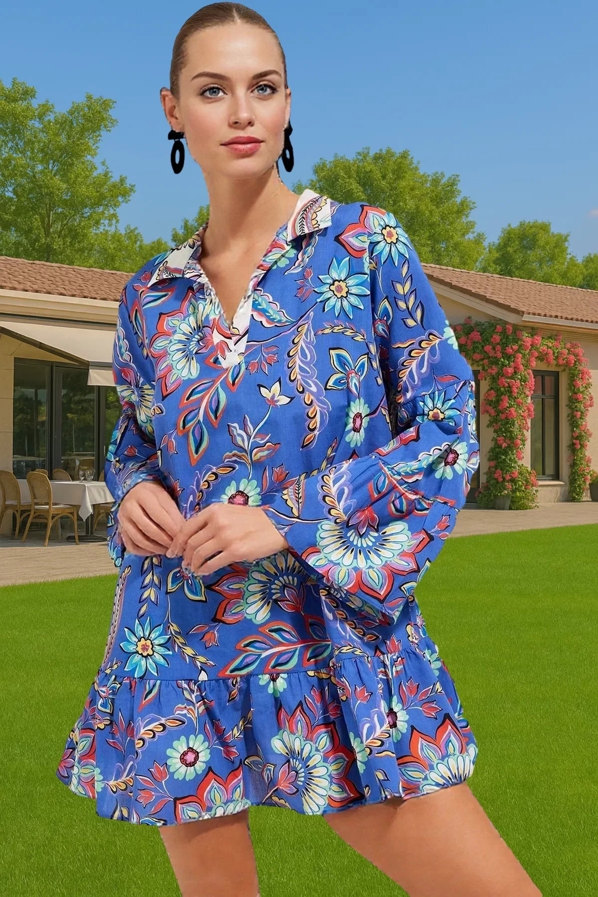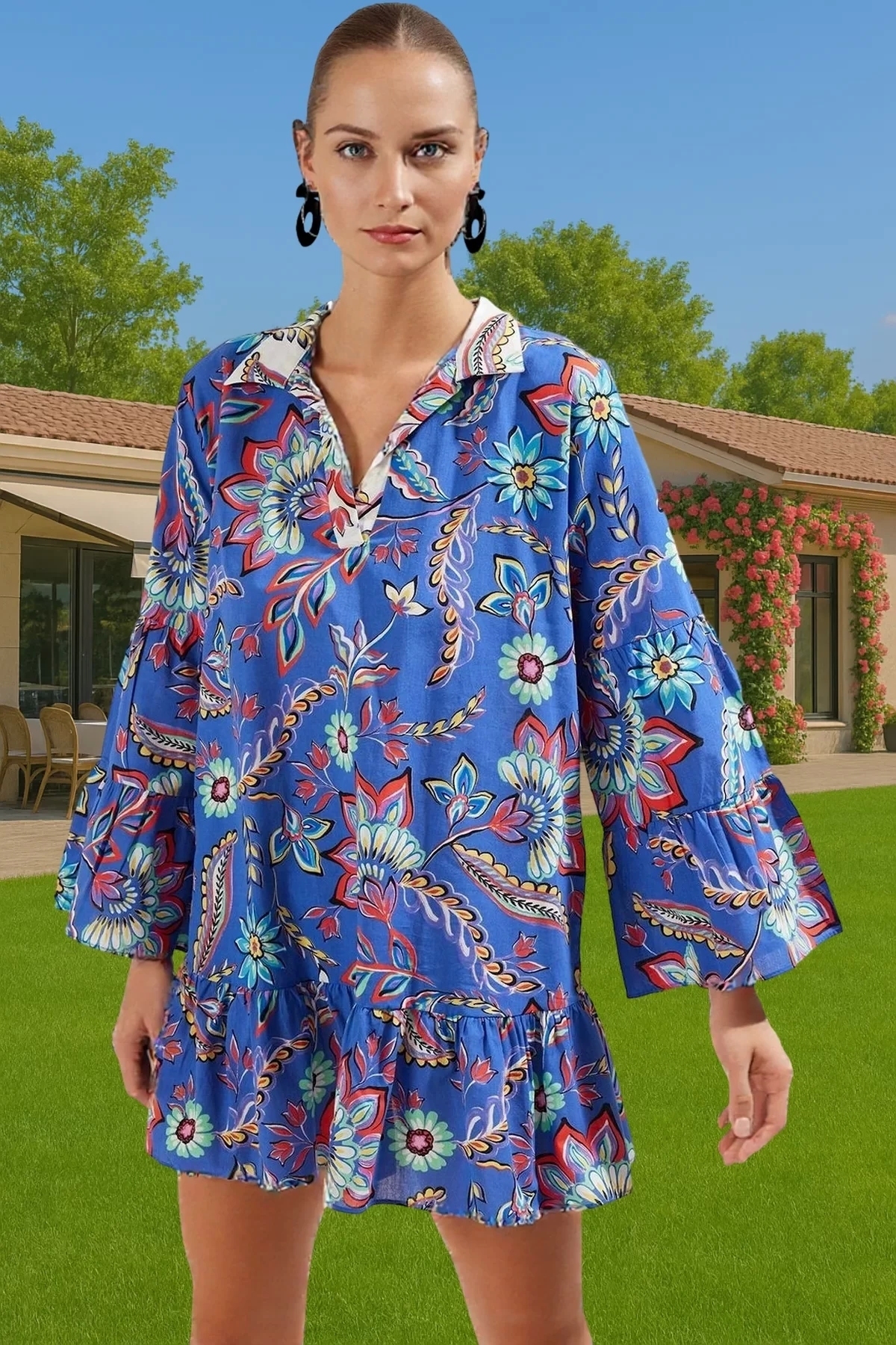 Yazlık Kadın 0 Pamuk Mini Elbise Vual Dokuma Çiçekli Desenli Şık Görünüm Rahat Ve Şık Şık Görünüm