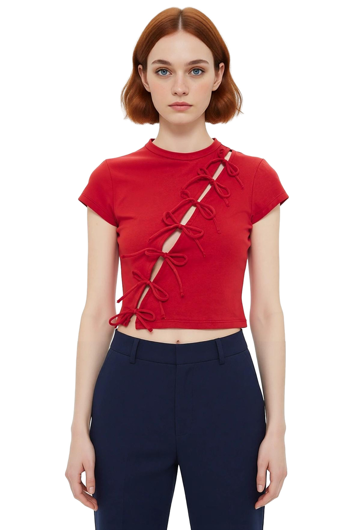 Materyal Bileşeni: 94% Pamuk, 6% Elastan, Renk: Bordo, Yaka Tipi: Bisiklet Yaka, Kalıp: Fitted, Boy: Crop, Ortam: Casual/Günlük, Dokuma Tipi: Likralı Penye Süprem, Sezon: Yaz, Kol Boyu: Kısa, Ürün Detayı: Bağlama Detaylı Bu ürün, yüksek kalite standartlarına uygun olarak üretilmiştir. Günlük kullanımda konfor ve şıklığı bir arada sunar. Uzun ömürlü malzemesi sayesinde yıllarca kullanabilirsiniz. Modern tasarımı ile her ortamda dikkat çeker. Özenle seçilmiş kumaşı ve işçiliği ile fark yaratır. Rahat kesimi ve ergonomik tasarımı ile gün boyu konforu garanti eder.