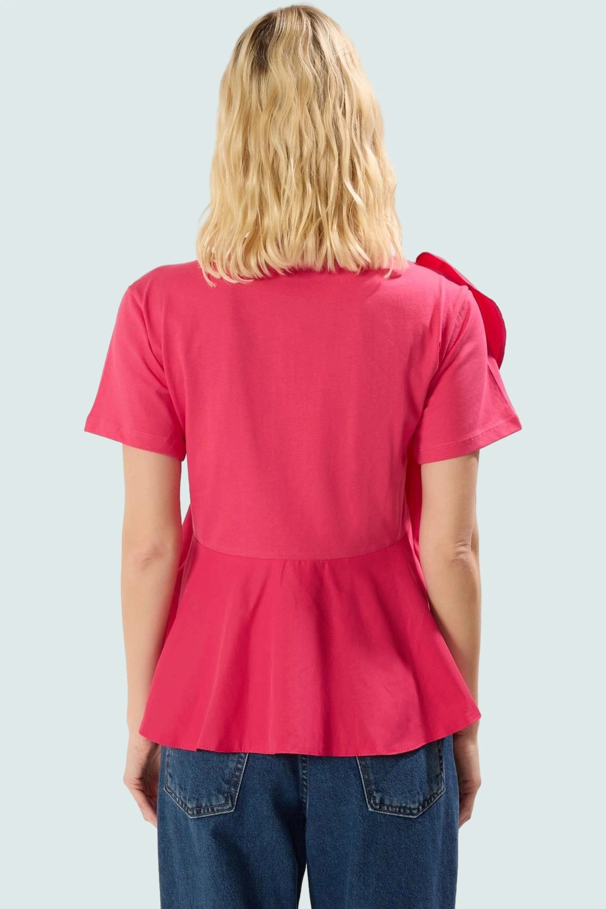 Günlük hayattan iş toplantılarına kadar birçok farklı ortamda kullanabileceğiniz bu bluz, her zaman şık ve stil sahibi görünmenizi sağlayacak. Jean pantolonlarla, şık eteklerle veya kumaş pantolonlarla kombinleyerek farklı stilleri deneyebilirsiniz. Yaz aylarının enerjisini ve rahatlığını stilinize yansıtmanın en kolay yolu bu bluz ile mümkün. Pembe rengi ile enerjik ve neşeli bir hava katarken, düz dokusuyla da her tarza uyum sağlıyor.