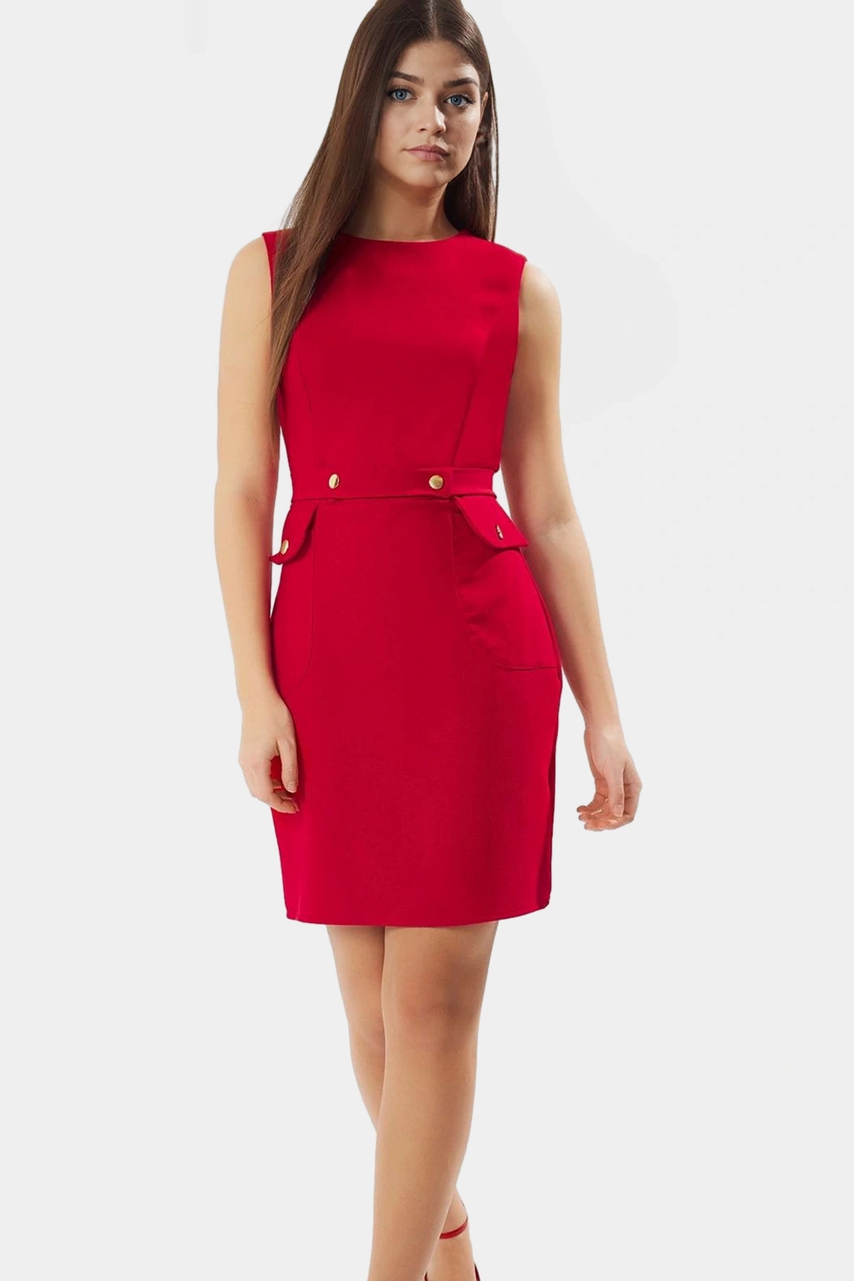 - Kalıp: Bodycon, – Kumaş Tipi: Dokuma, – Desen: Düz, – Yaka Tipi: Bisiklet Yaka, – Kol Boyu: Kolsuz, – Cep: Cepsiz, – Boy: Kısa/Mini, – Siluet: Bodycon, – Dokuma Tipi: Finike, – Baskı/Nakış Tekniği: Baskısız, – Sürdürülebilirlik Detayı: Hayır, – Paket İçeriği: Tekli, – Menşei: TR, – Materyal Bileşeni: 88% Polyester, 12% Elastan, – Model Ön Boyu: 88 cm
