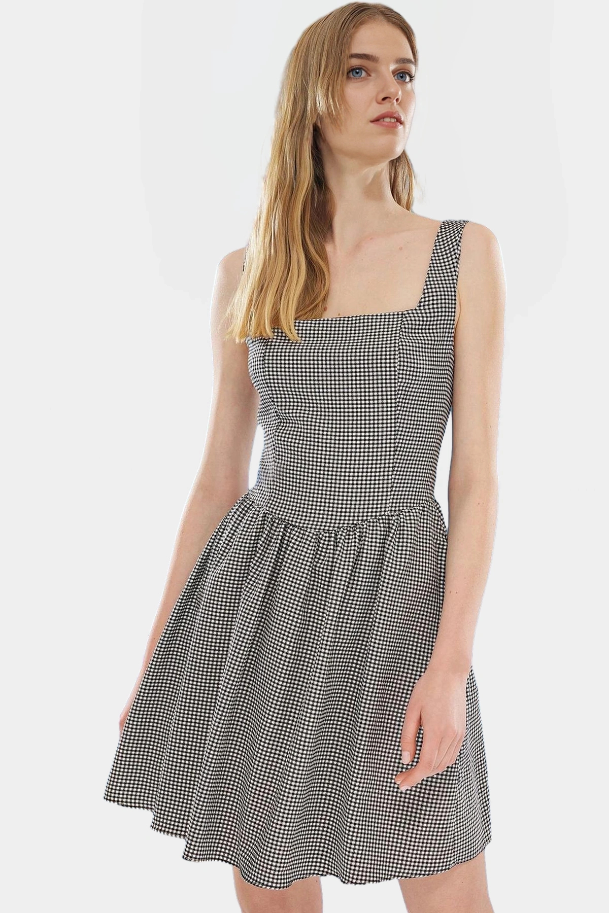 Bu nefes alabilen ve rahat mini elbiseyle yaz günlerinin tadını çıkarın! 95% polyester ve 5% elastandan oluşan yüksek kaliteli dokuma kumaşı, gün boyu konfor sunar. Skater kalıbı vücudunuza mükemmel otururken, kare yakası şık bir görünüm sağlar. Ekose deseniyle tarzınızı yansıtacağınız bu elbise, hem günlük hayatta hem de özel günlerde kullanabileceğiniz bir seçenek.